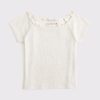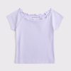 Slim-fitting short-sleeve tee in our soft rib knit fabric and short length, that covers the waistband and hits slightly above the hips, with off-the-shoulder detail, on-trend lettuce hem at neckline and all-over ribbed detail. Imported.