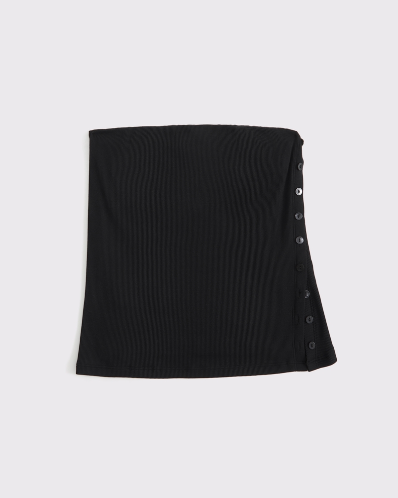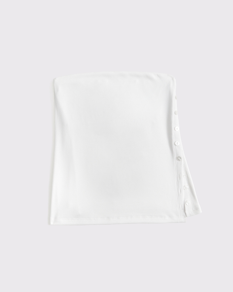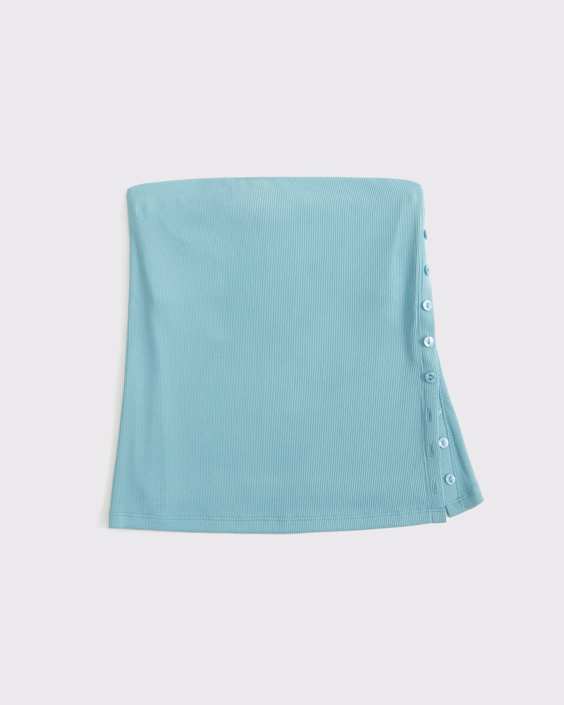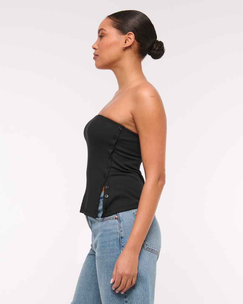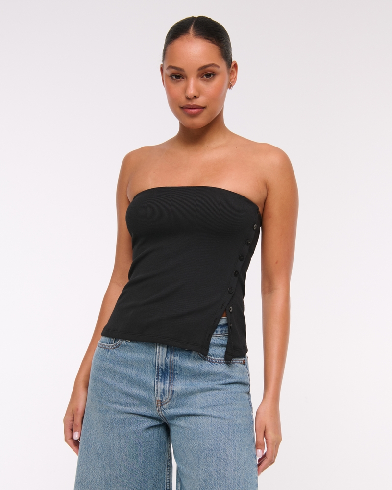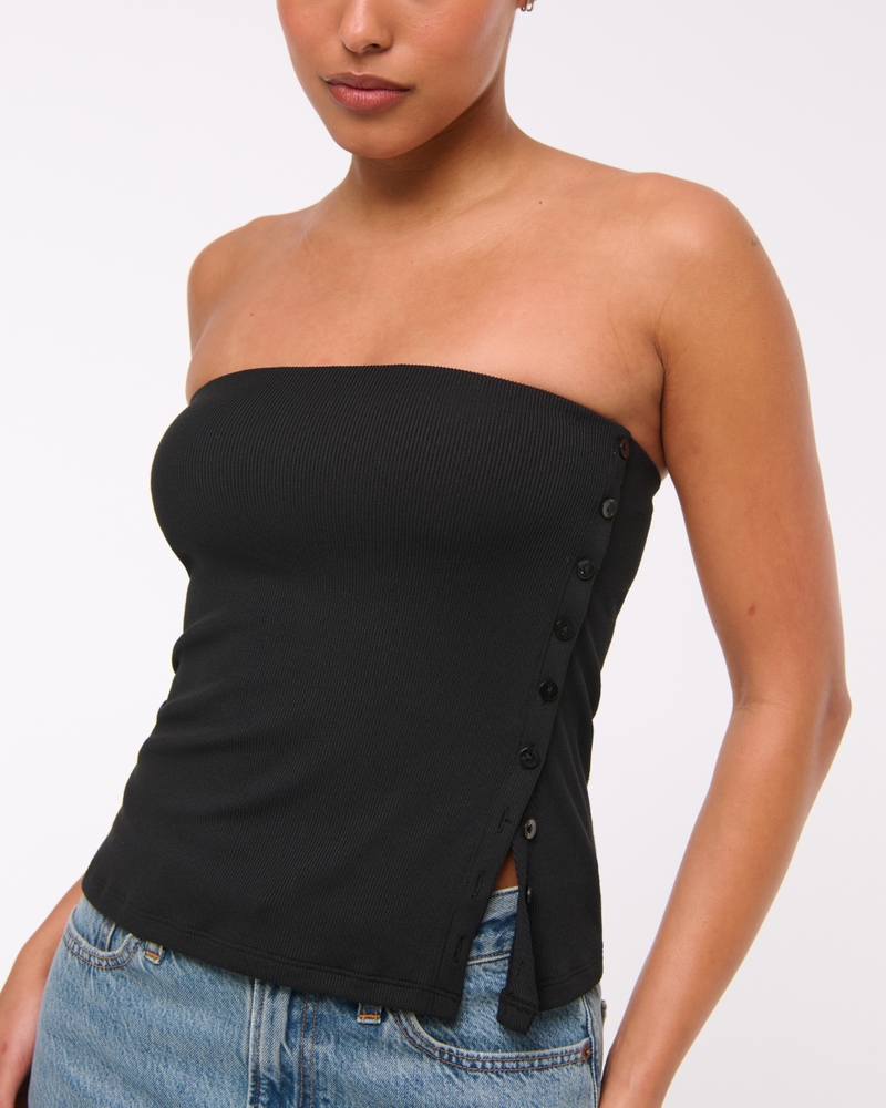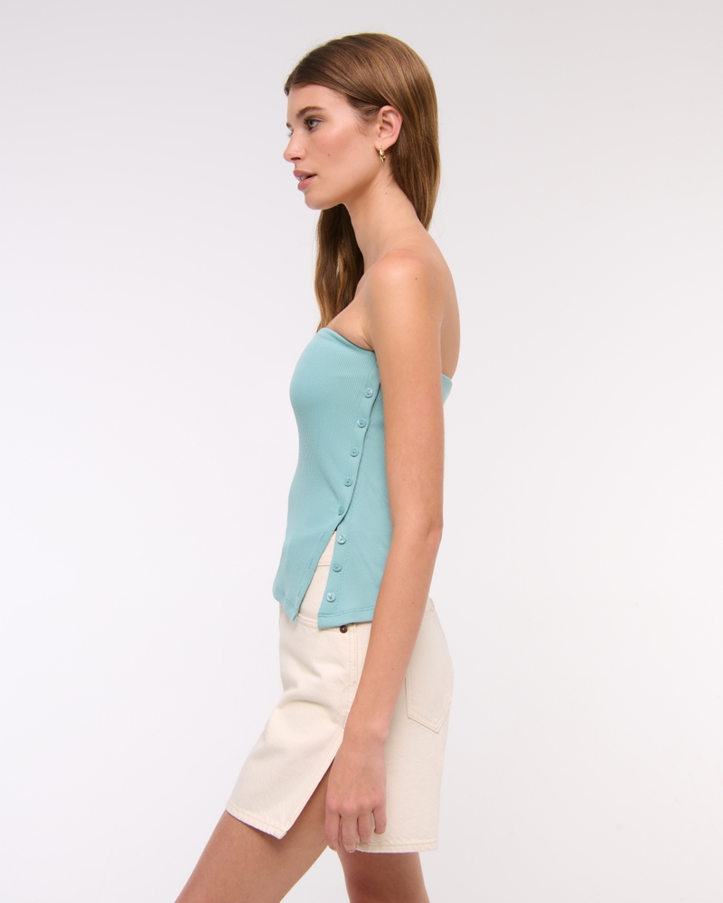 Slim-fitting strapless tube top in our powdered rib fabric, featuring functional side buttons. Imported.