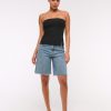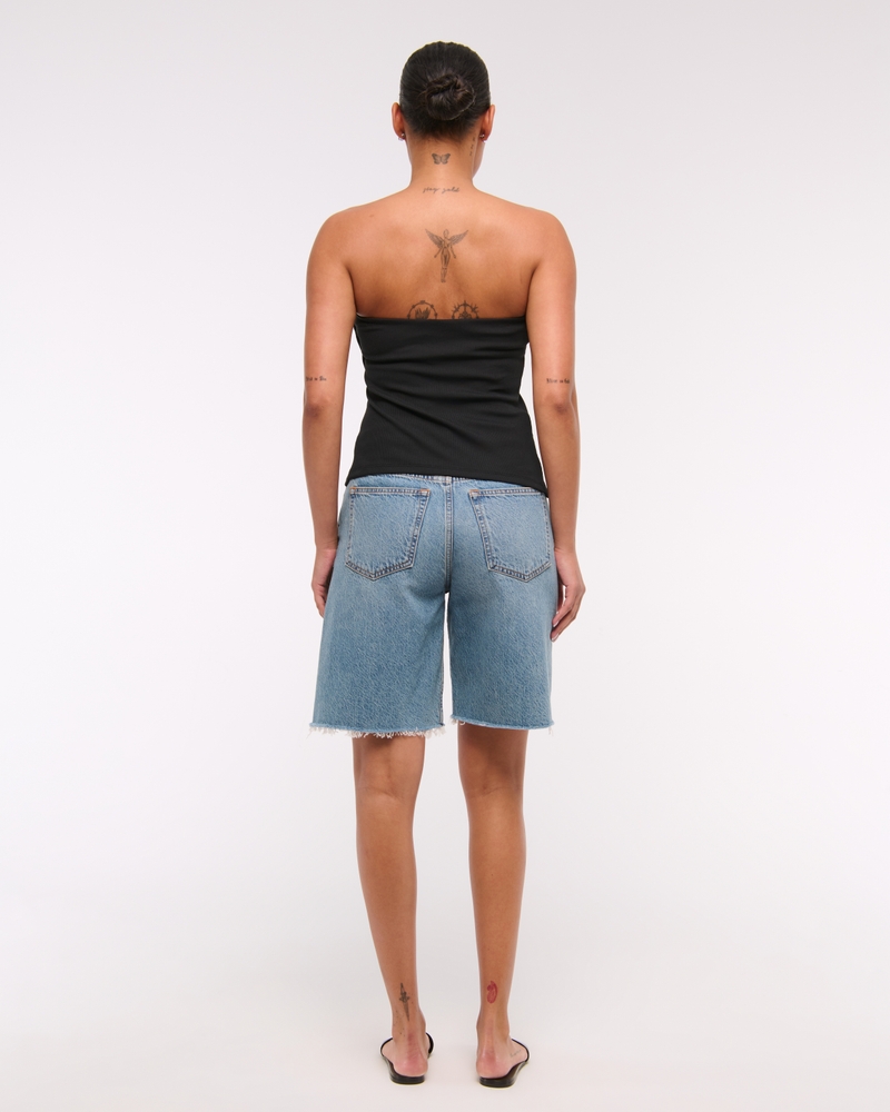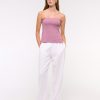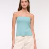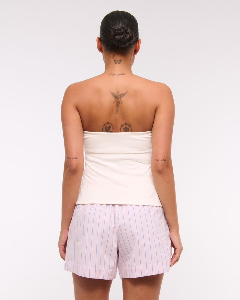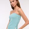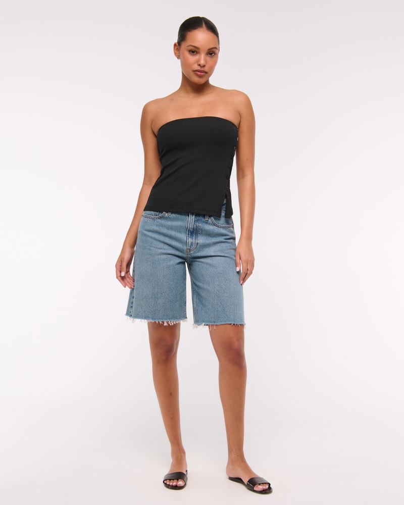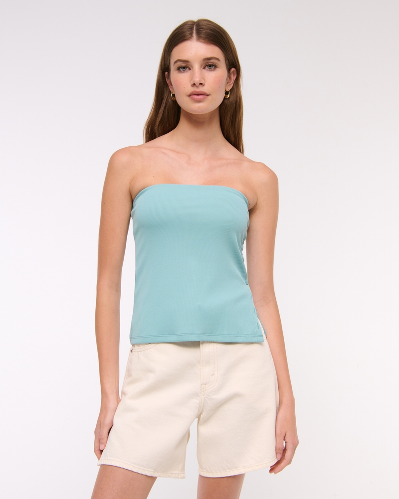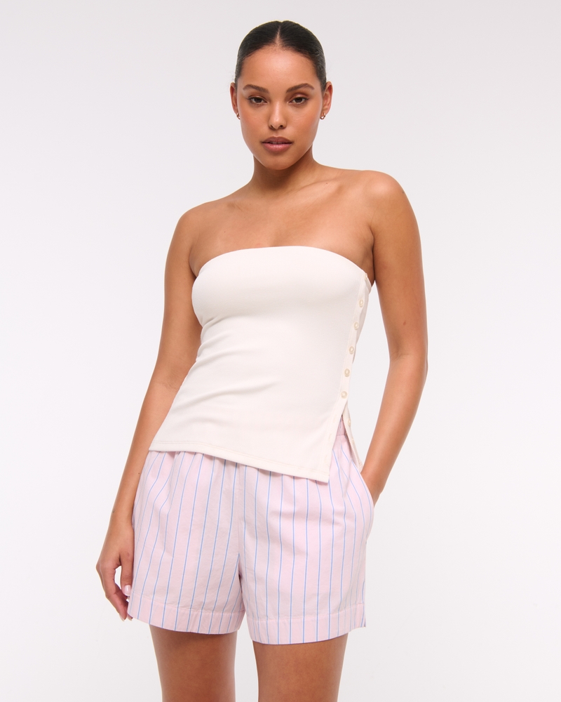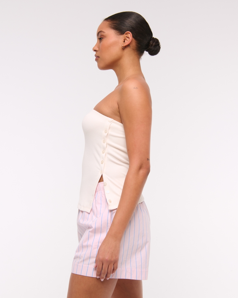 Slim-fitting strapless tube top in our powdered rib fabric, featuring functional side buttons. Imported.