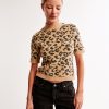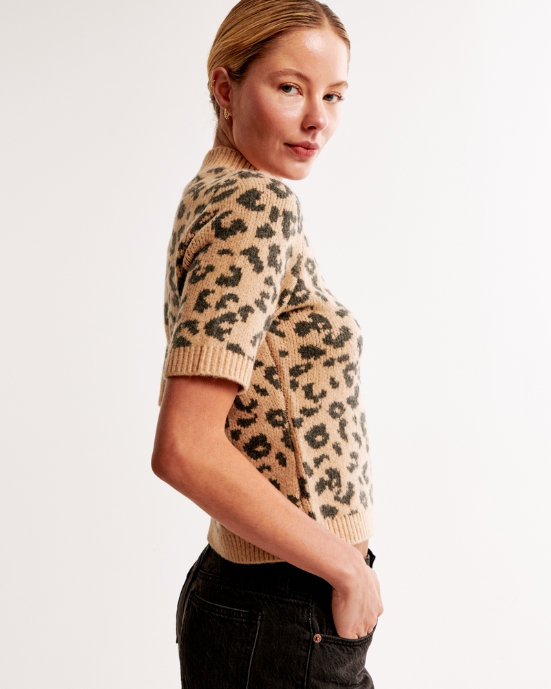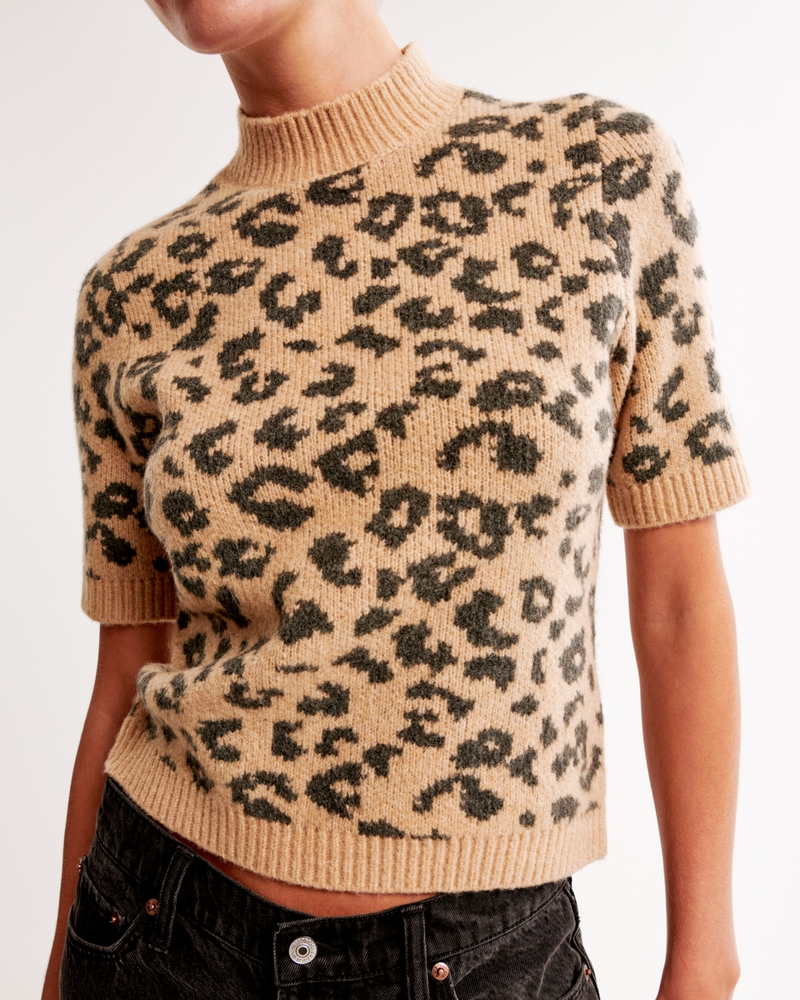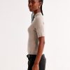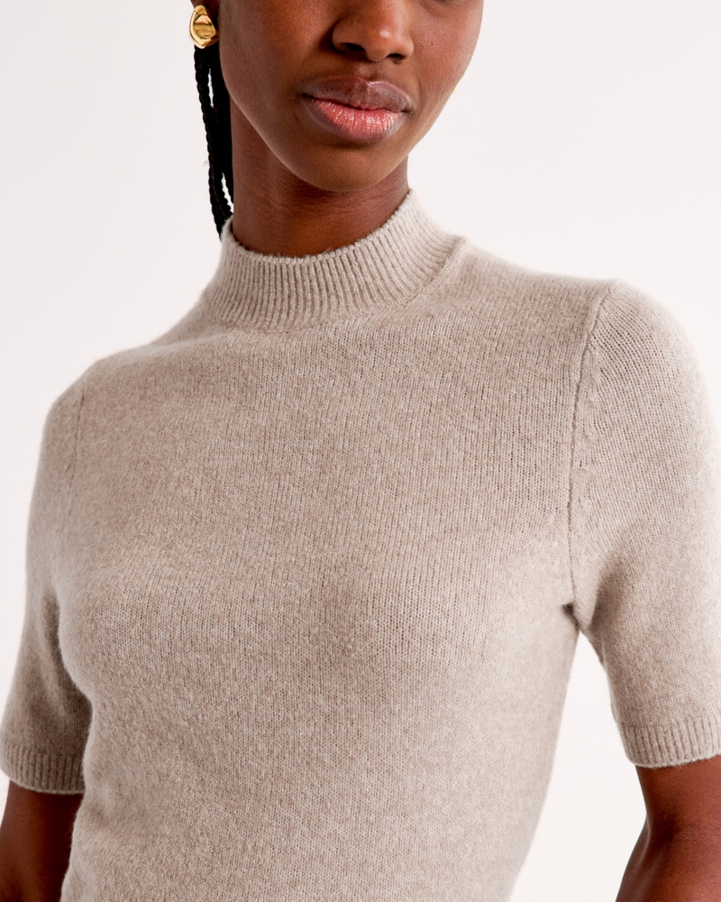 Short-sleeve tee in our super soft sweater yarn fabric and body-skimming silhouette, featuring a mock neckline and rib trims at the neckline, sleeve and hem. Pairs perfect with your favorite skirt or tailored pants! Imported.