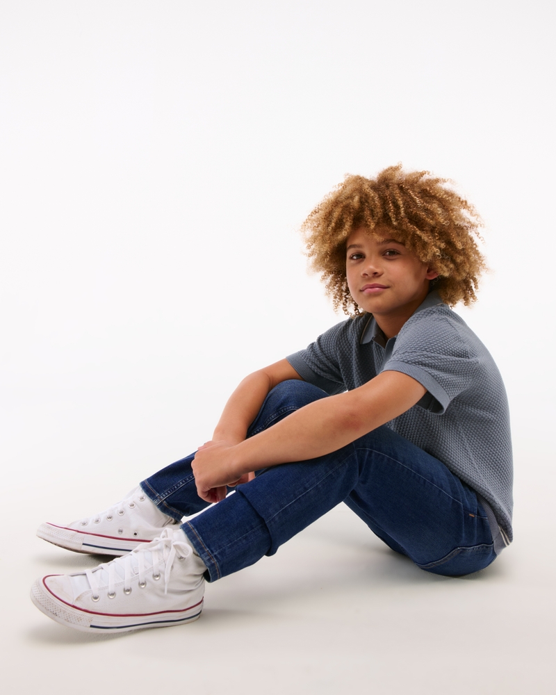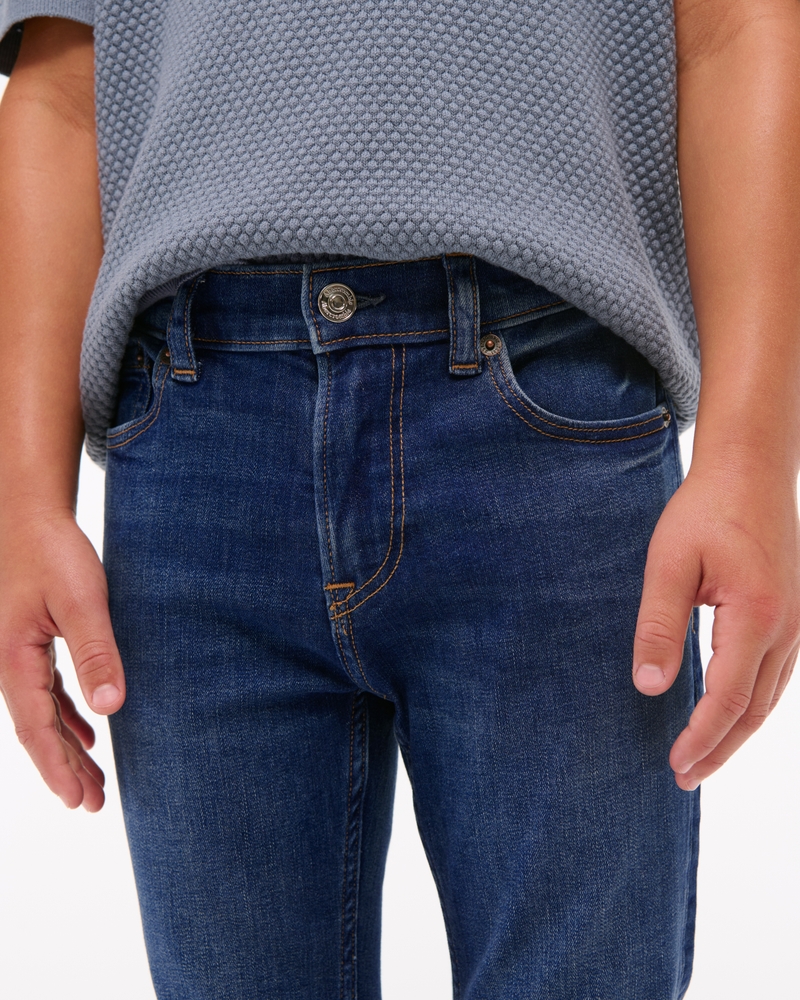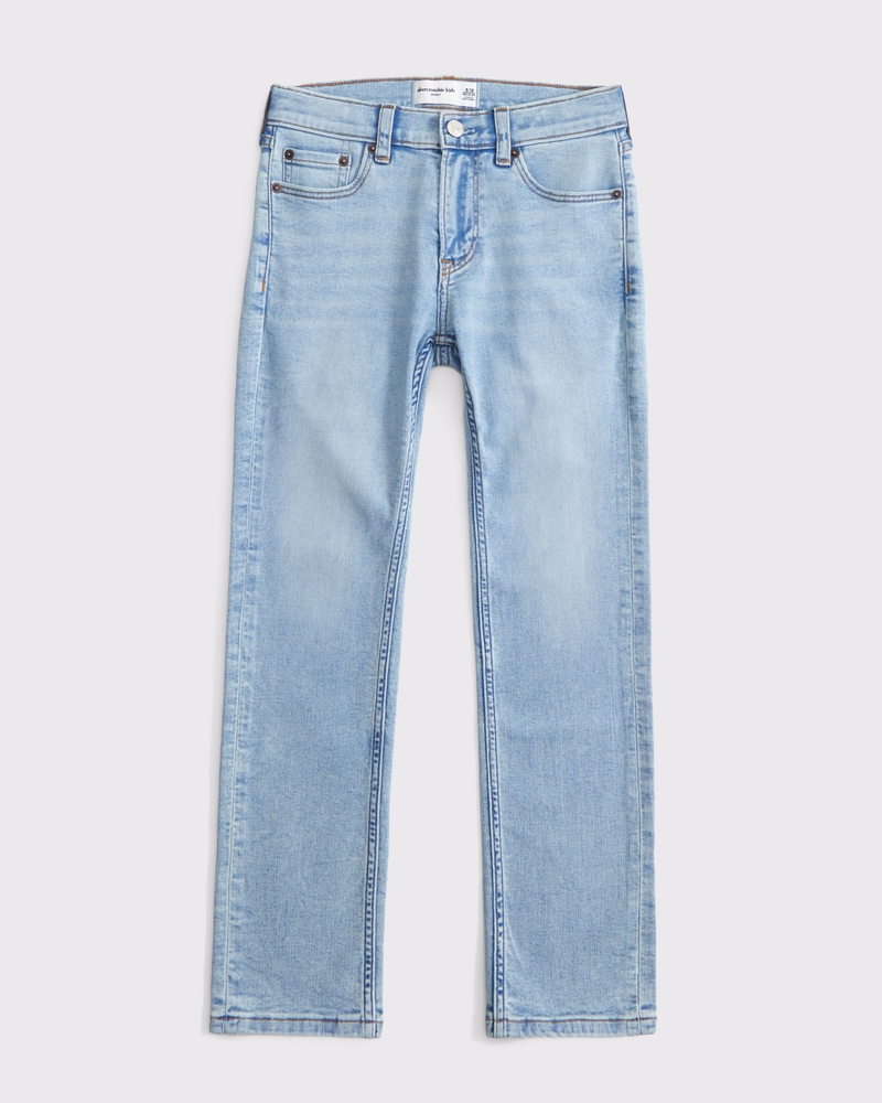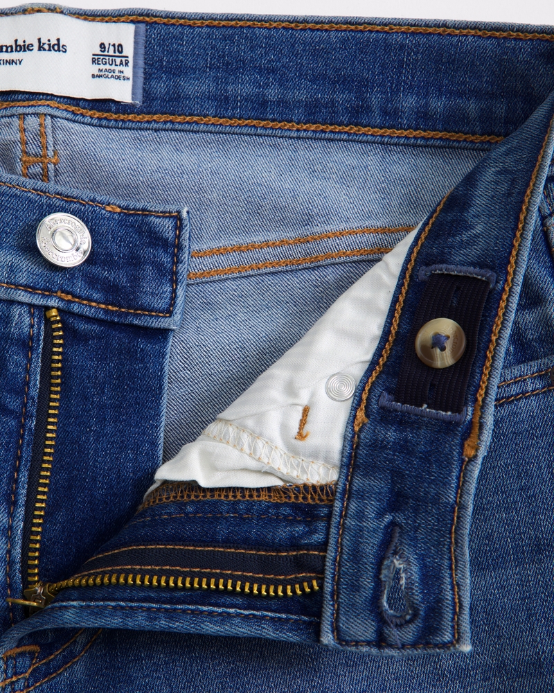 Skinny jeans in ultimate stretch fabric with top-to-bottom slim fit styled with 5-pocket construction and waistband adjusters. Light wash. Imported.