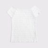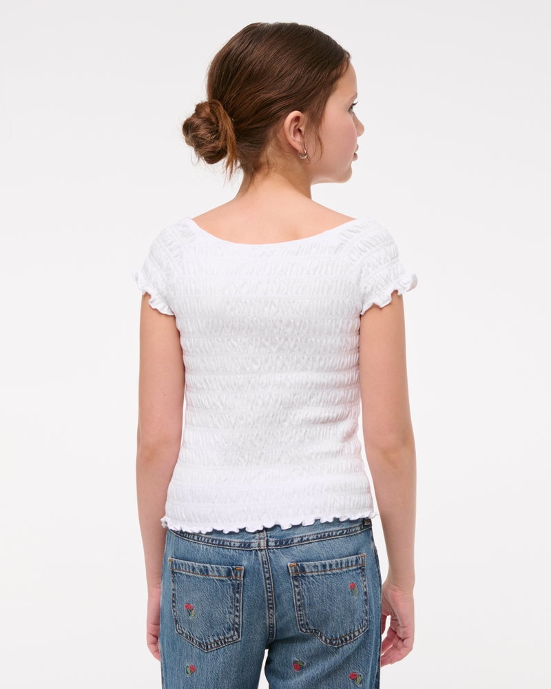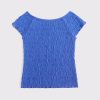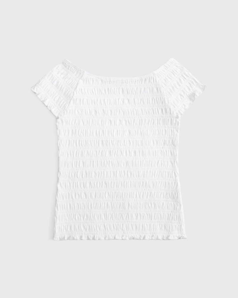 Comfortable short-sleeve tee in our soft jersey fabric, with all-over smocking and off-the-shoulder detail. Imported.