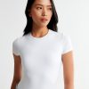 Our new slim-fitting short-sleeve bodysuit in our elevated, barely-there soft matte seamless fabric, with crew neckline and two-snap bottom closure. Our buttery Soft Matte fabric hugs your body in lightweight compression, with a flattering all-over blur, that’s perfect for every body, every day. Imported.