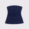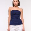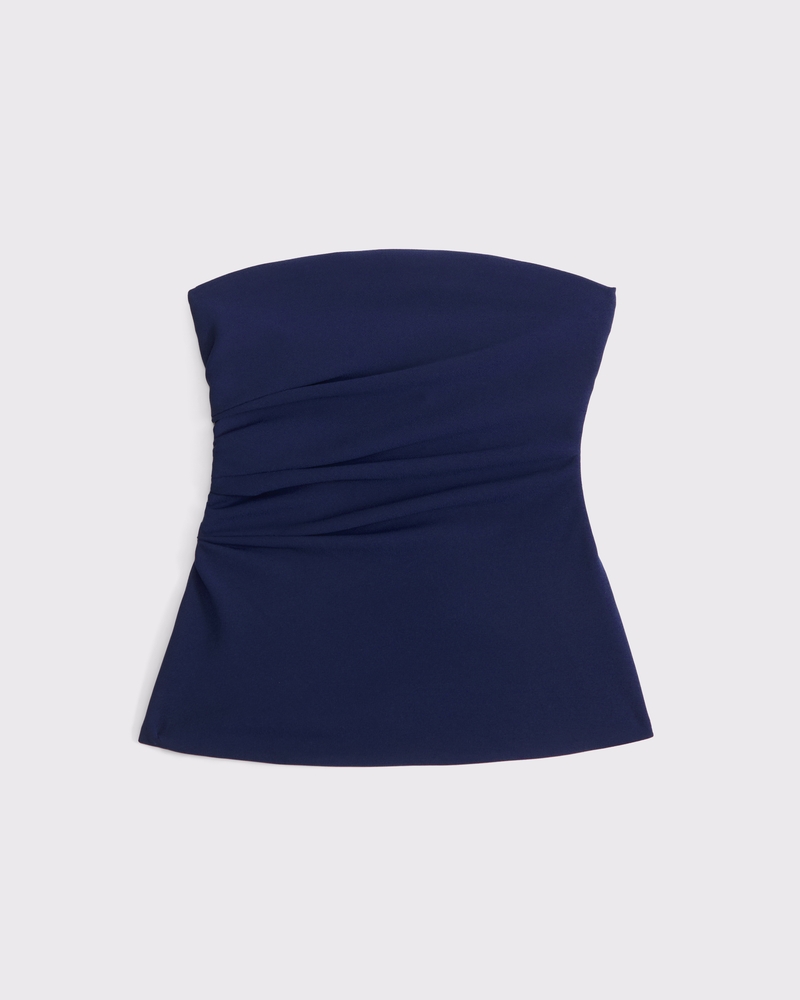 Flattering strapless top in our double stretch crepe fabric, featuring on-trend side ruching details and curved hem. Imported.