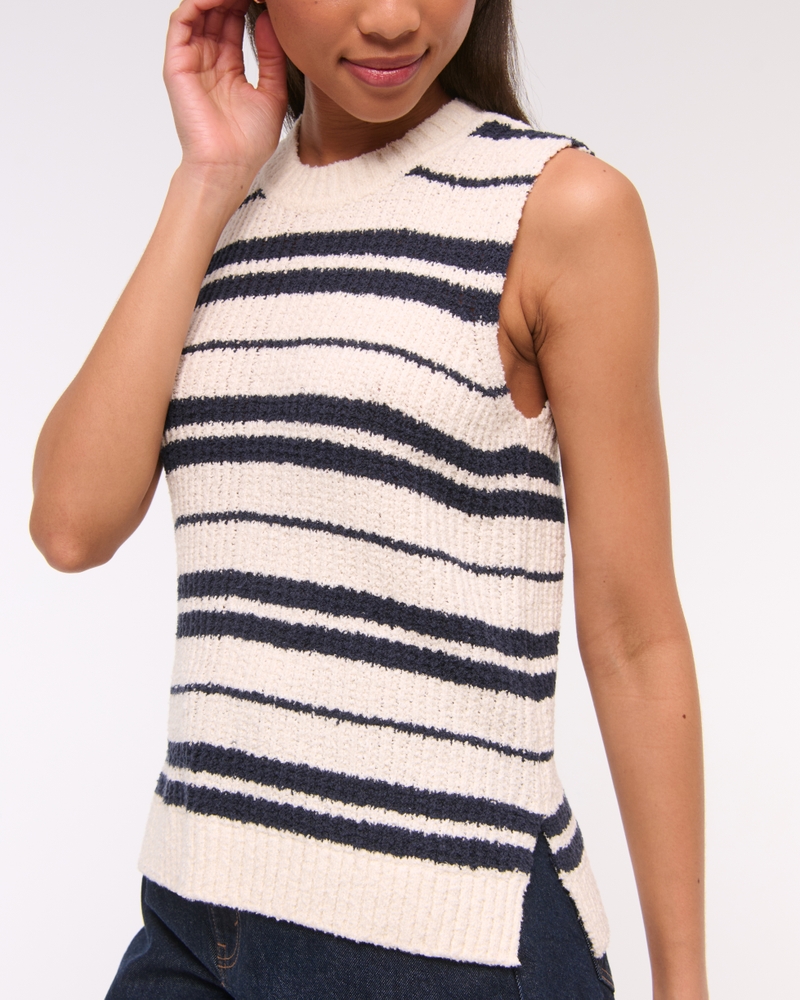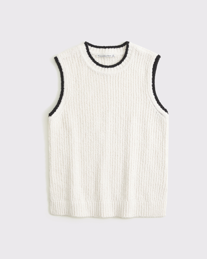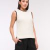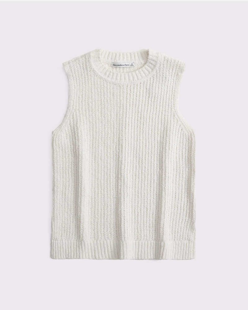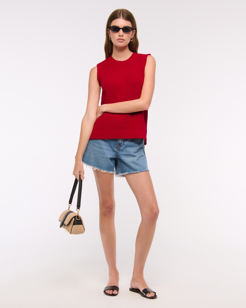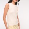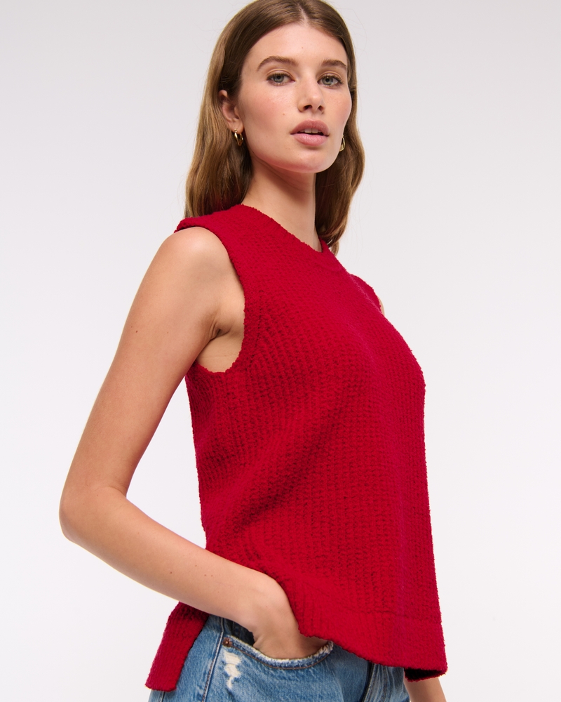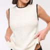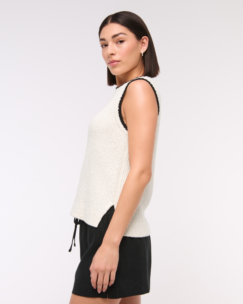 Body-skimming shell tank in our soft textural sweater-knit fabric, featuring a crew neckline, side-slit details at the hem, textural stitching details throughout and rib trims at the neckline and hem. Pairs perfect with your favorite mini skirt!