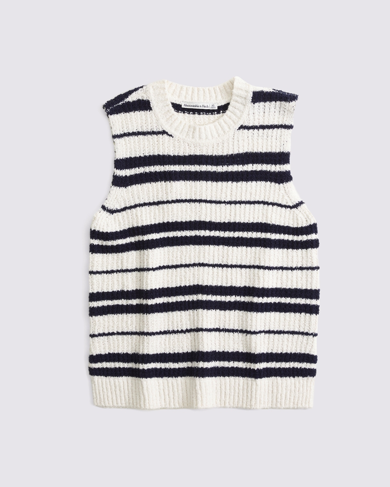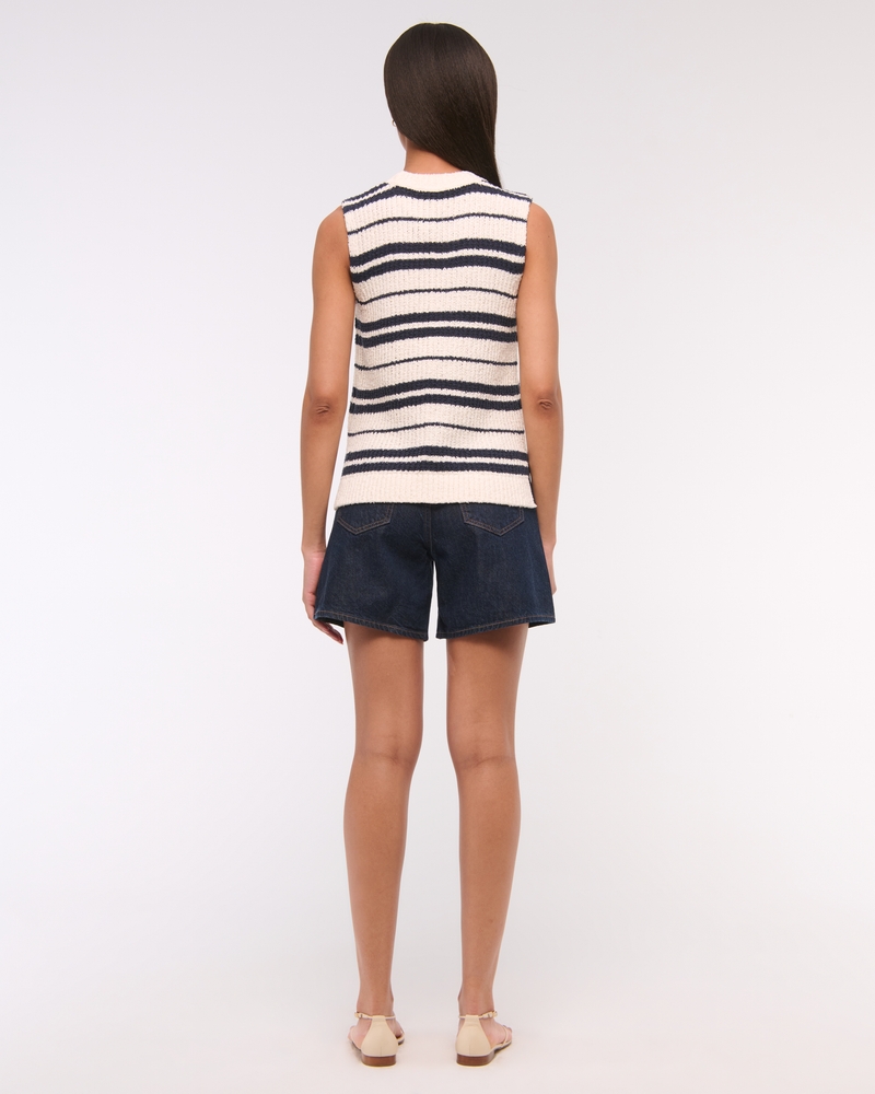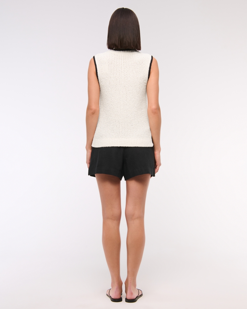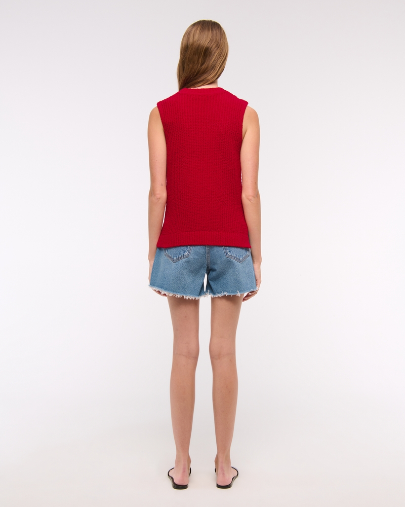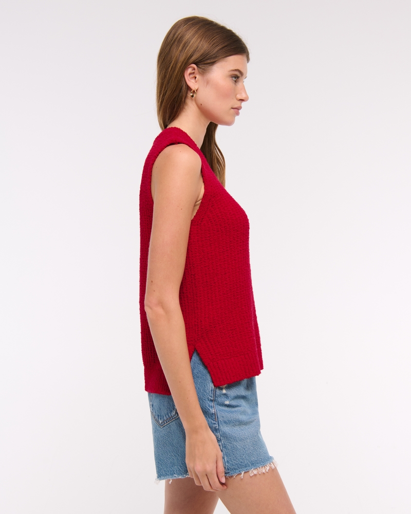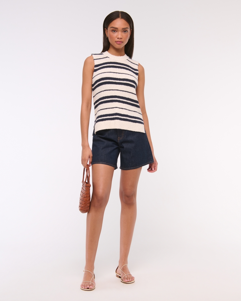 Body-skimming shell tank in our soft textural sweater-knit fabric, featuring a crew neckline, side-slit details at the hem, textural stitching details throughout and rib trims at the neckline and hem. Pairs perfect with your favorite mini skirt!
