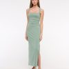 Our new maxi dress in our ultra soft and flattering cotton-blend fabric, featuring ruching details along the bodice, portrait neckline and a flirty slit on the skirt. Imported.