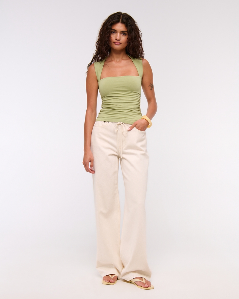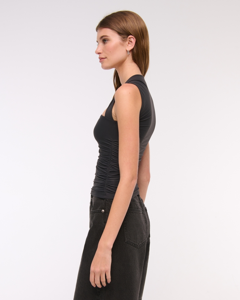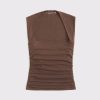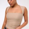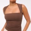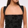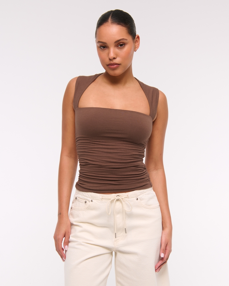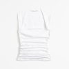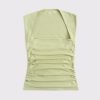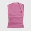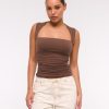 Slim-fitting top in our flocked mesh fabric and cropped length, featuring ruching details along the bodice and portrait neckline. Imported.