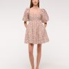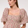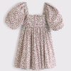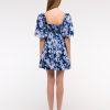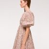 Flattering short-sleeve mini dress in our classic poplin fabric and babydoll silhouette, featuring on-trend puff sleeves, ruching details along the bodice, volume skirt with pockets and square neckline. Imported.