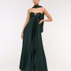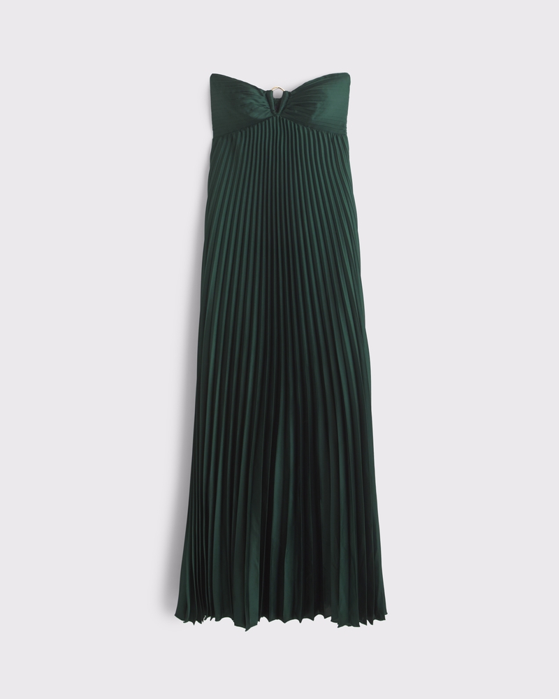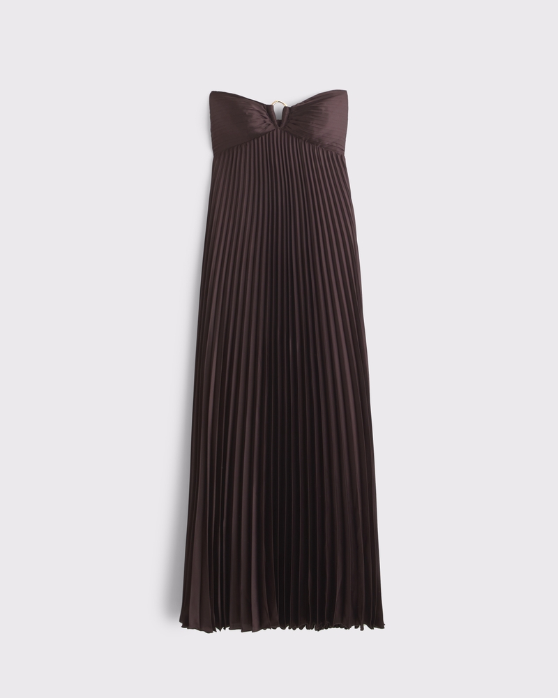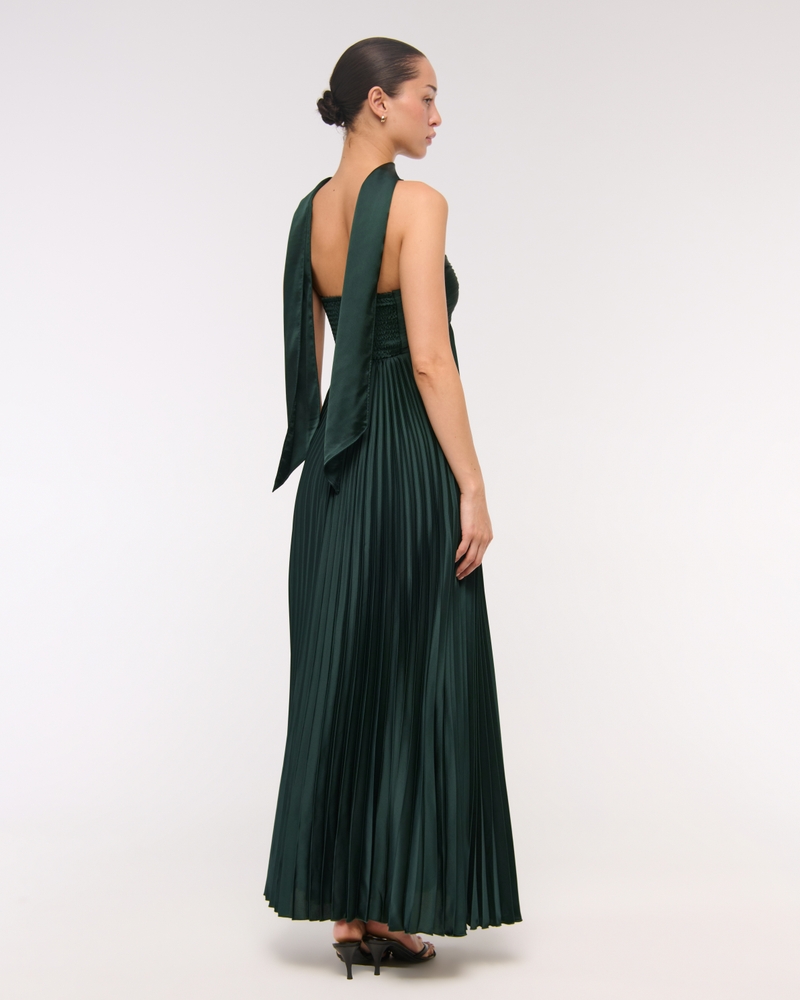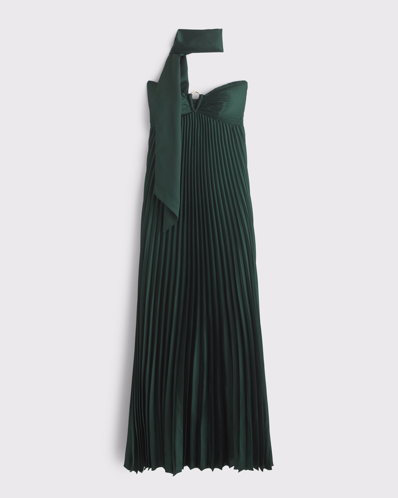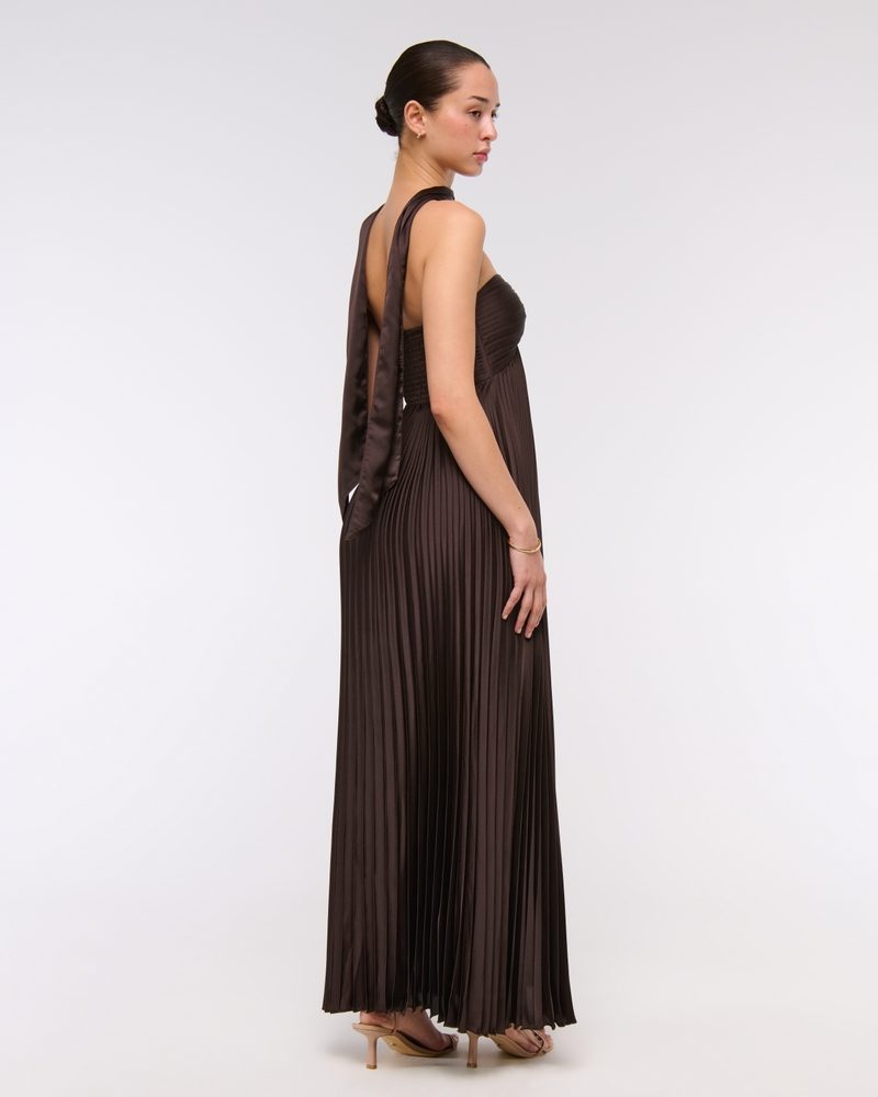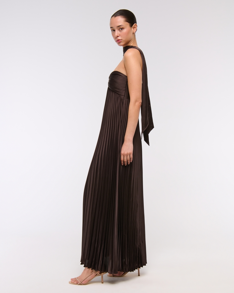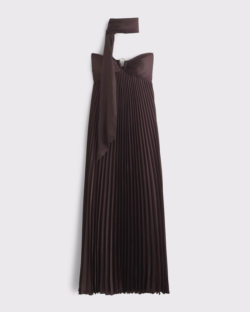 Flattering longer-length maxi dress in our textured satin fabric and babydoll silhouette, featuring on-trend hardware detail at the bust, all-over pleating details and a flowy skirt. Comes with a matching scarf, too!