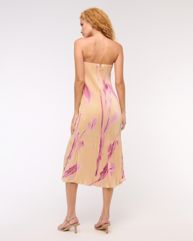Flattering strapless midi dress in our soft satin fabric, featuring on-trend pleat release details throughout, removable straps and straight neckline. Imported.