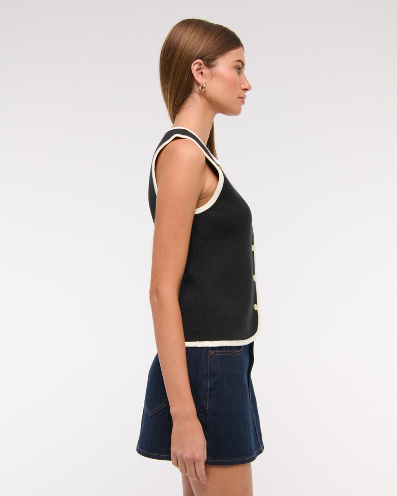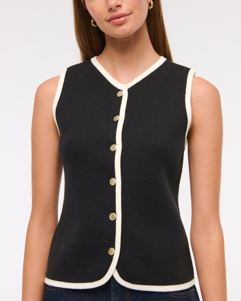 Body-skimming vest in our structured yet stretchy, customer-favorite LuxeLoft sweater yarn fabric, featuring a high-V neckline and button-through detail. Pairs perfect with your favorite jeans or a mini skirt!