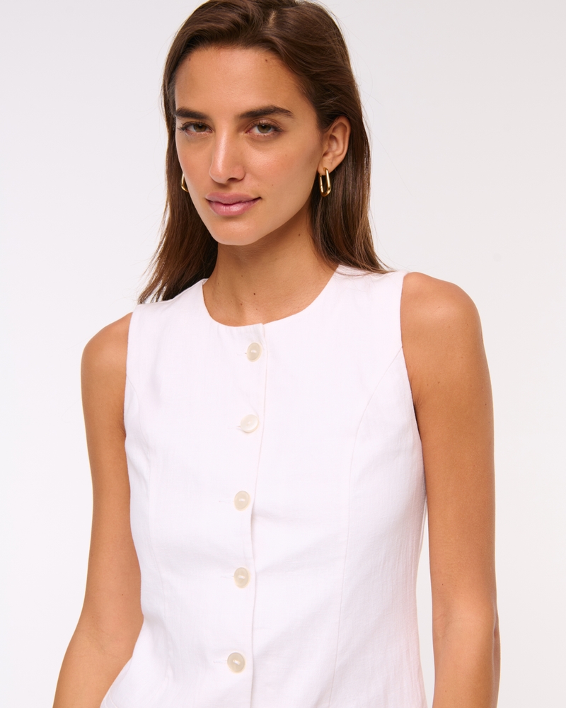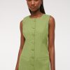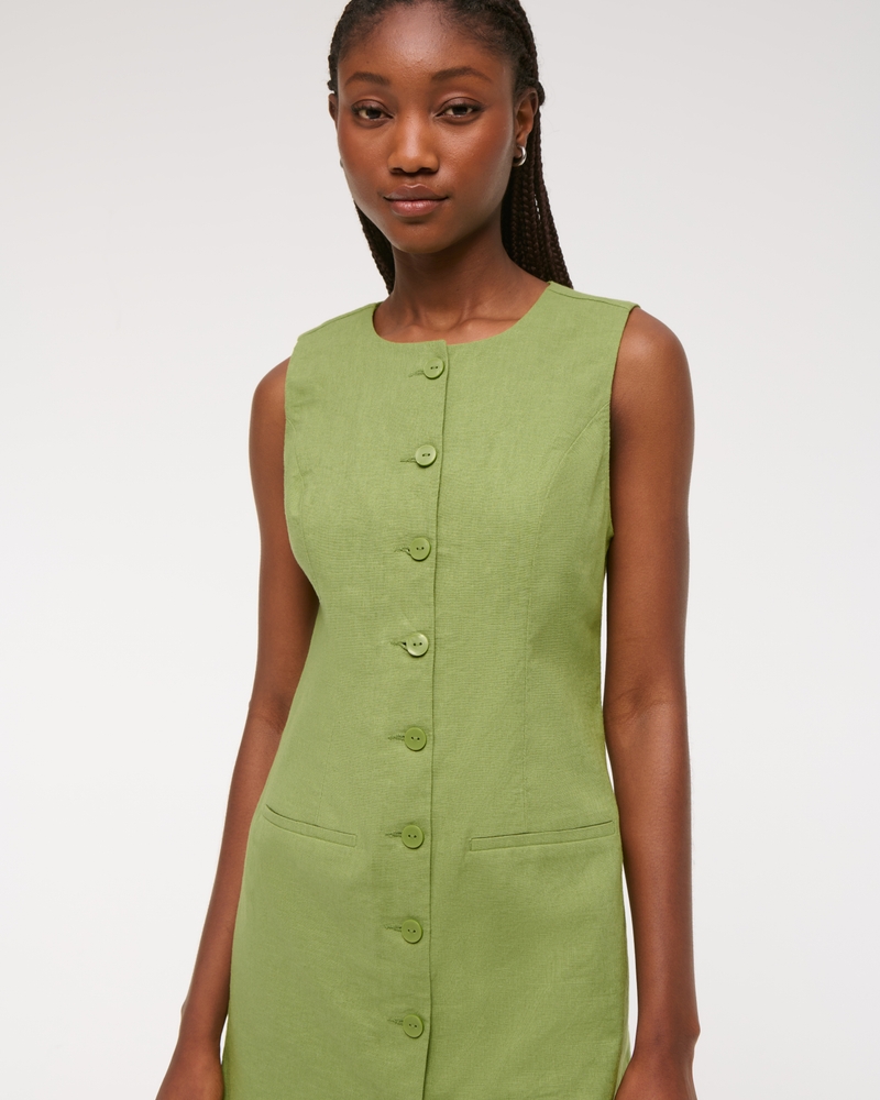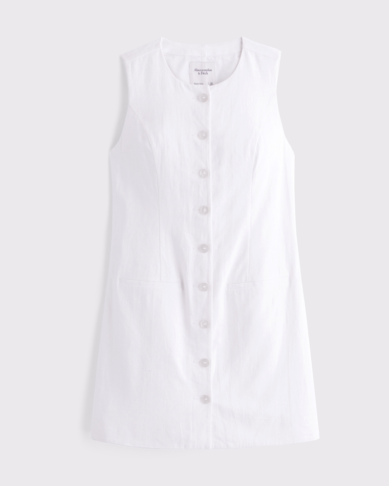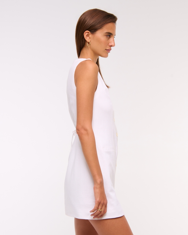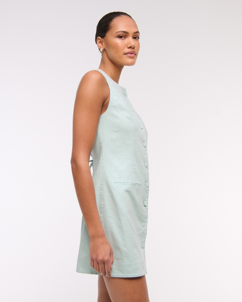 Our flattering mini dress in our comfortable linen-blend fabric and body-skimming silhouette, featuring a cinching back tie and button-through detail. Imported.