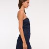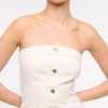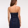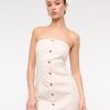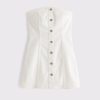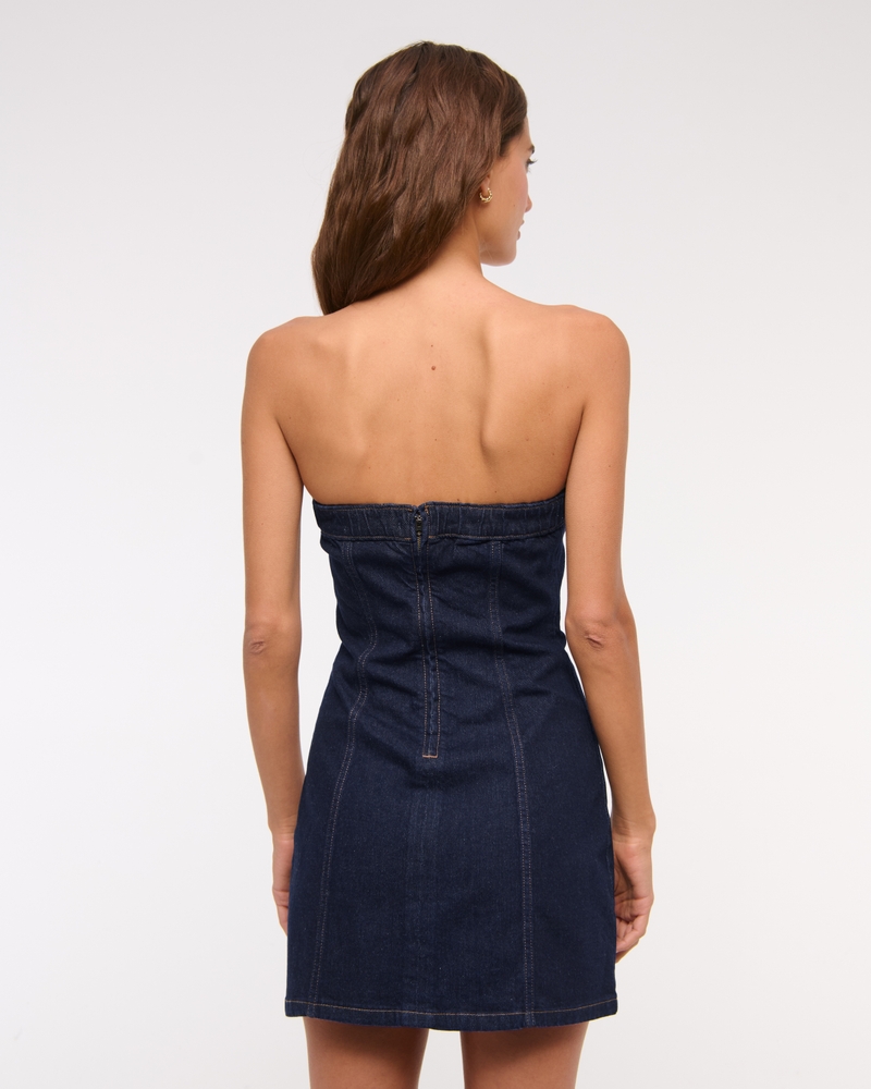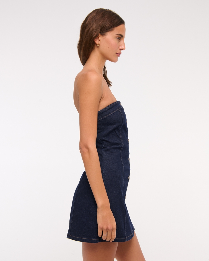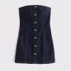 Body-skimming vest mini dress in our classic stretch denim fabric, featuring a strapless neckline and button-through details along the bodice. Imported.