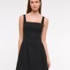 Flattering mini dress in our stretch-enhanced cotton-blend fabric, featuring a slim-fitting bodice, square neckline, dipped waistline, adjustable straps and a flirty skirt. Imported.