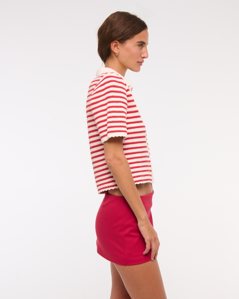 Our new low rise mini skort in our everyday menswear fabric and micro length, featuring a shorts lining underneath for comfort, back elastic waist detail and a side zipper for a secure fit. Imported.