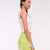 Our new mid rise mini skort in our soft sequin fabric, featuring a shorts lining underneath for comfort, back elastic waist detail and a side zipper for a secure fit. Imported.