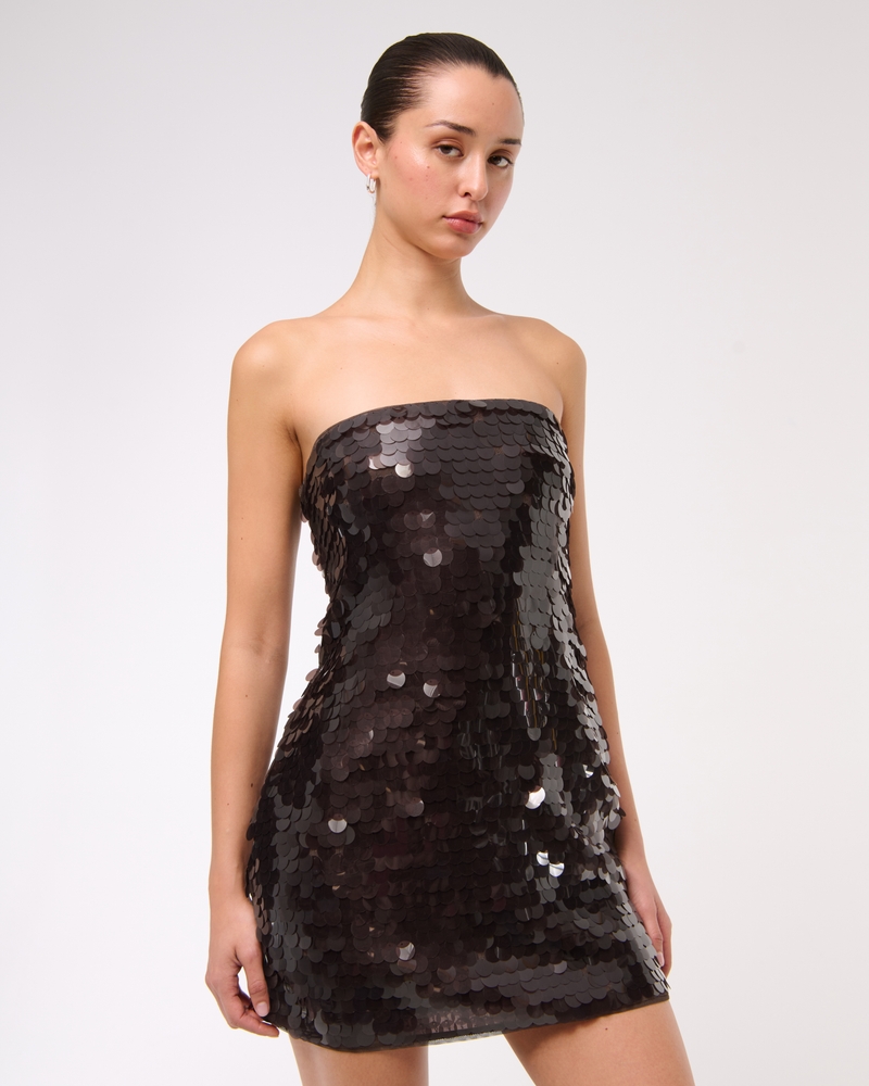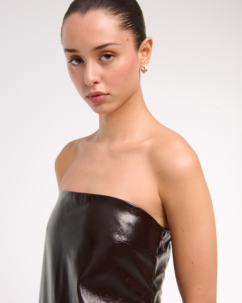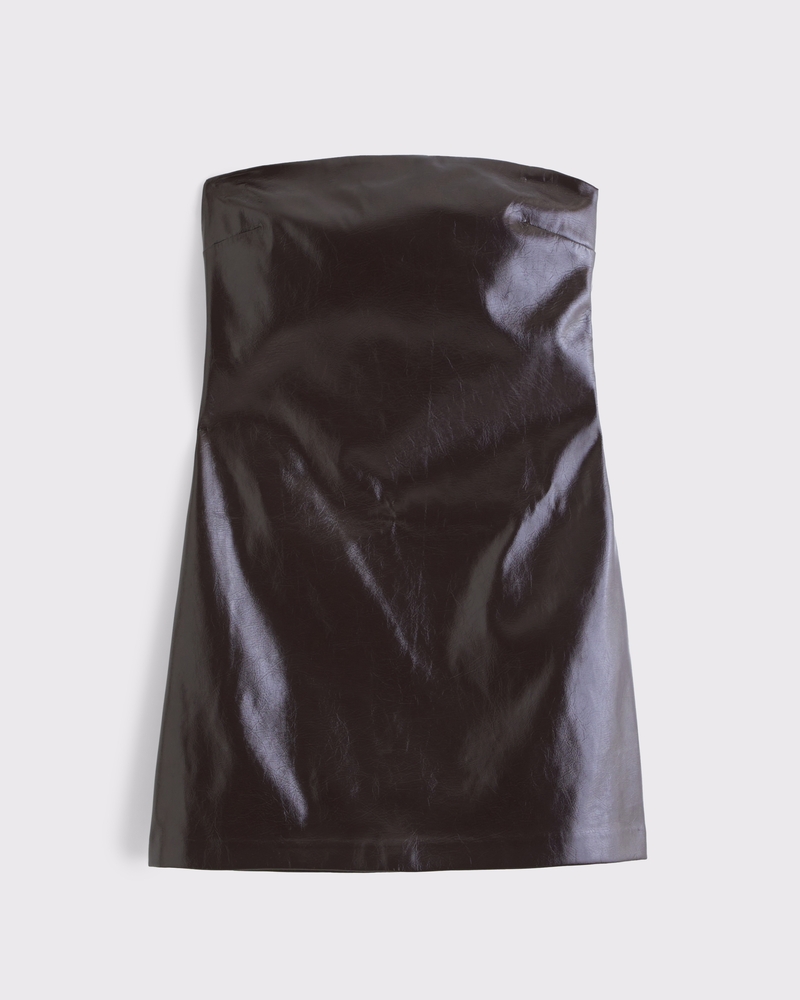 Flattering mini dress in our soft vegan leather fabric and slim-fitting silhouette, featuring a strapless neckline and built-in shorts for the perfect going out dress. Imported.