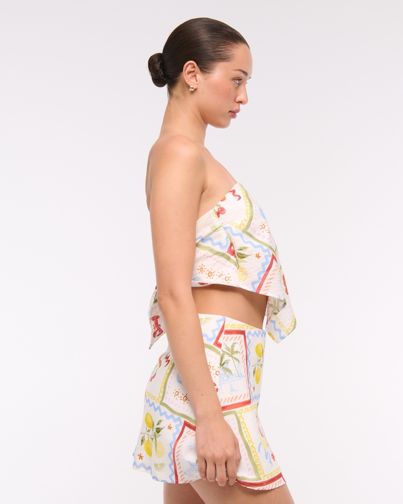 High rise mini skort in our matte satin fabric, featuring a shorts lining underneath for comfort, a scarf-style flirty skirt and a pull-on style elasticated waistband. Imported.