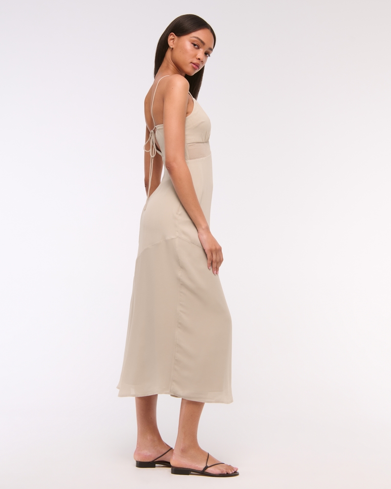Tie-Back Sheer Slip Midi Dress