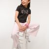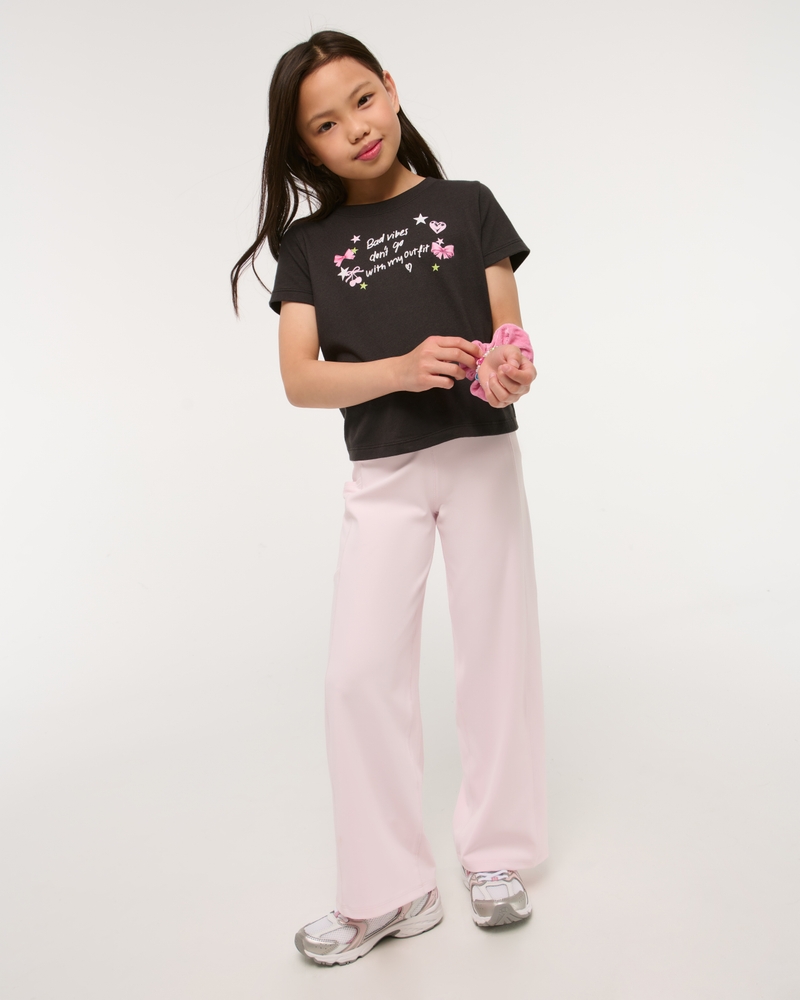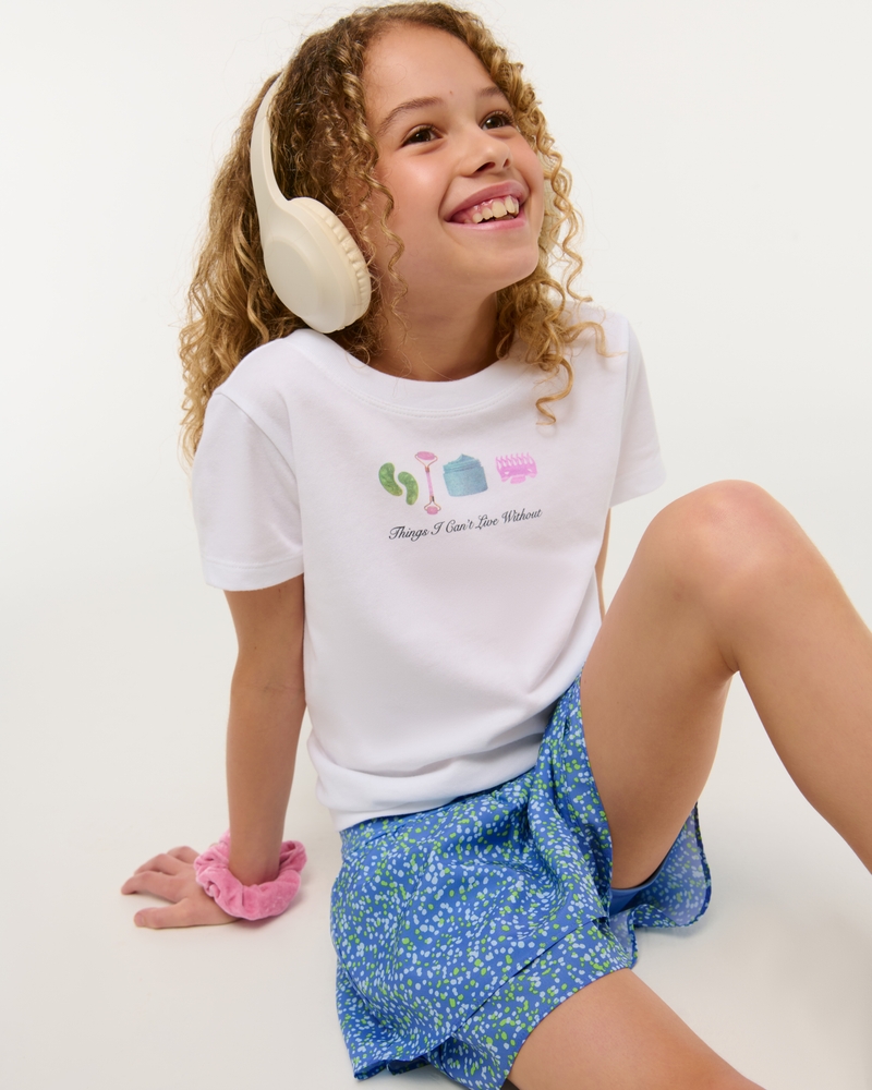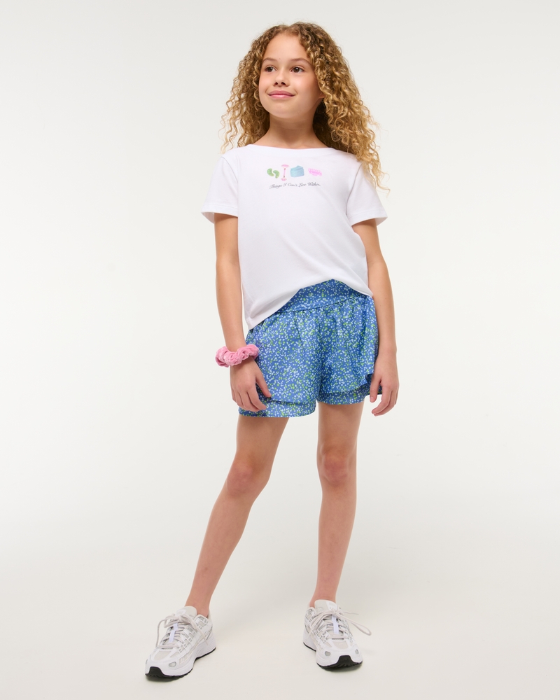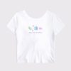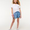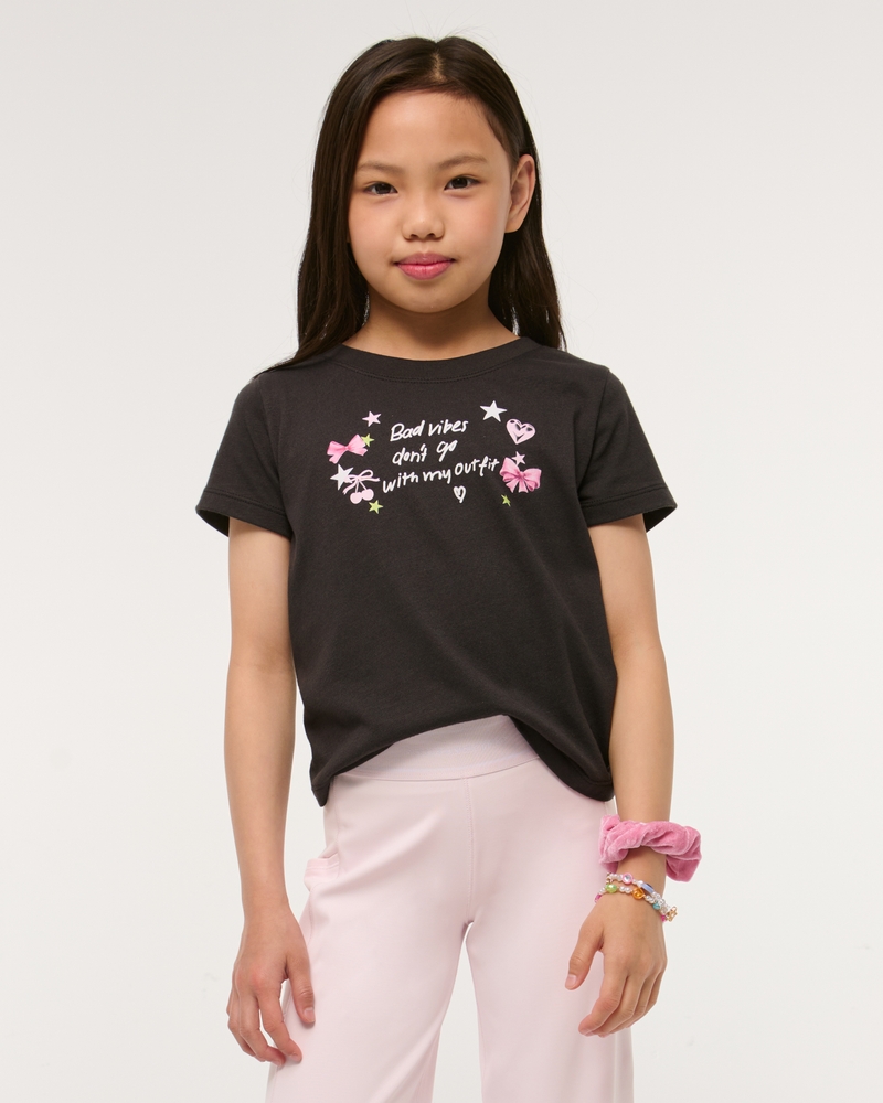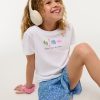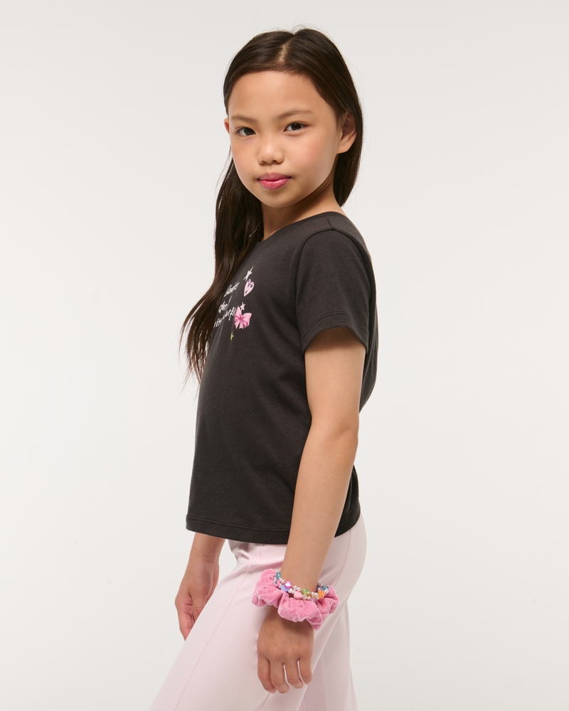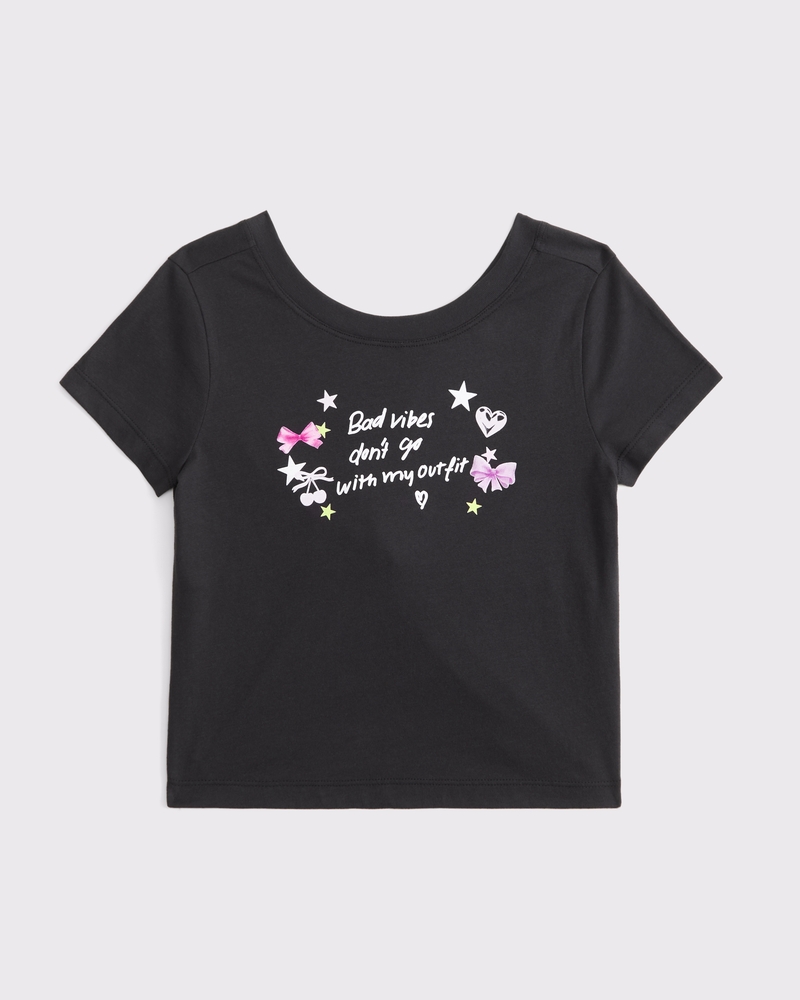 Comfortable short-sleeve tee in our soft jersey fabric and medium length, that hits right at the hips, featuring graphic detail at chest, on-trend twist-back detail and crew neckline. Imported.
