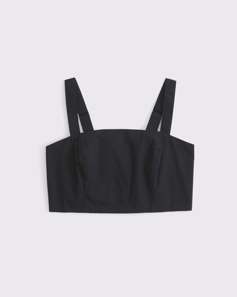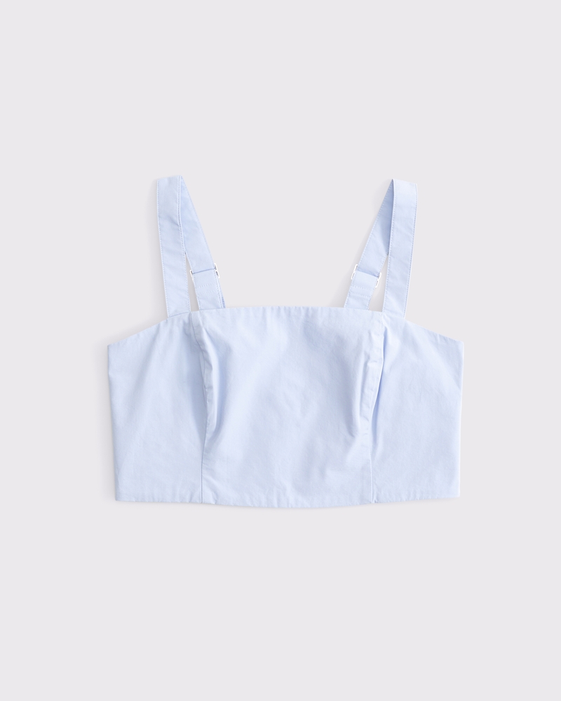Flattering cami top in our soft poplin fabric and new ultra cropped length, featuring corset-style seaming details along the bodice, bow-back detail and adjustable straps. Imported.