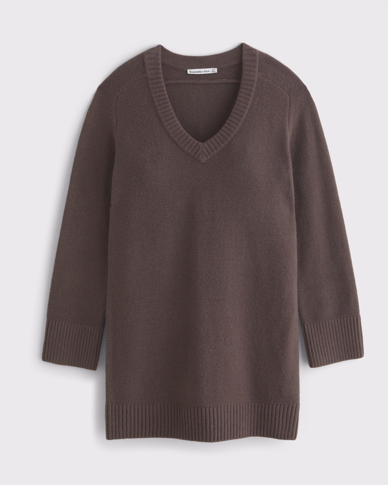 Comfortable long-sleeve mini sweater dress in our soft sweater-knit fabric and relaxed-fit silhouette, featuring a v-neckline for the perfect cozy fit. Imported.