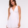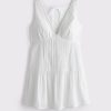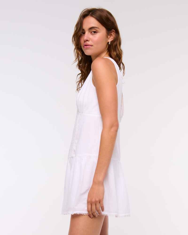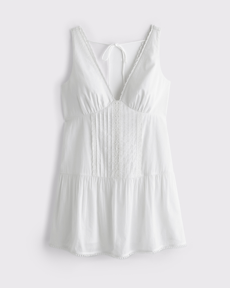 Flattering mini dress in our soft cotton fabric, featuring a slim-fitting silhouette, plunging v-neckline, lace-trim and pintuck details along the bodice and a flirty skirt. Imported.