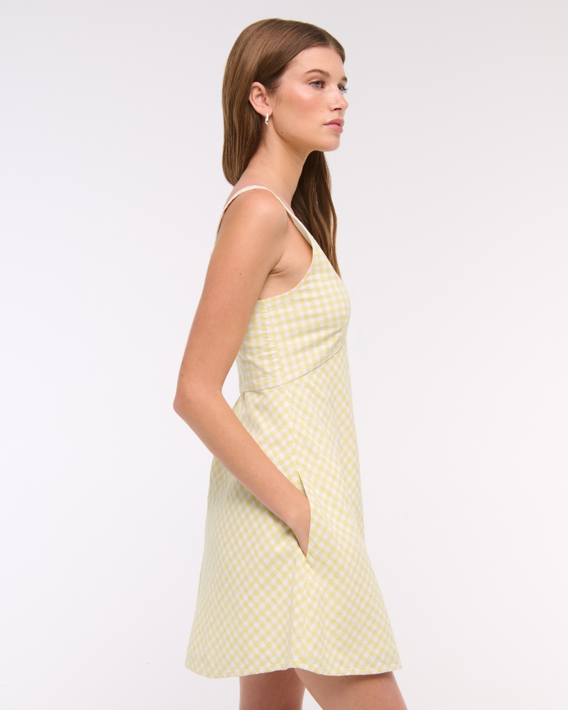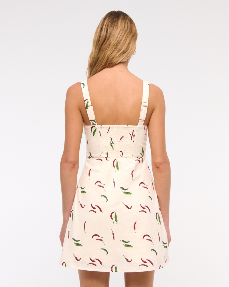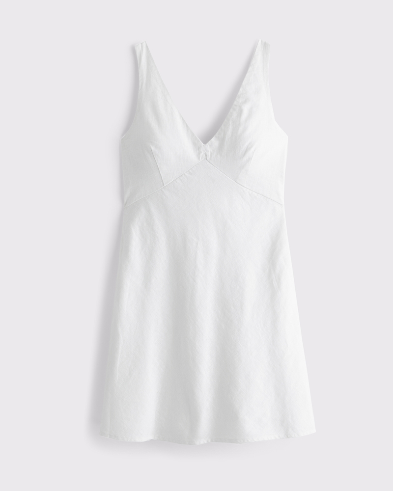 Flattering mini dress in our comfortable linen-blend fabric and slim-fitting silhouette, featuring a v-neckline, back smocking and adjustable straps for the perfect throw-on summer dress. Imported.