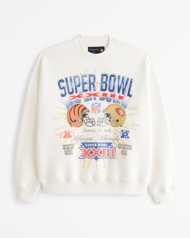 Classic sweatshirt in our softAF fleece fabric and oversized-fit silhouette, featuring vintage Super Bowl-inspired graphic detail at chest, crew neckline and banded hem and cuffs. Imported.