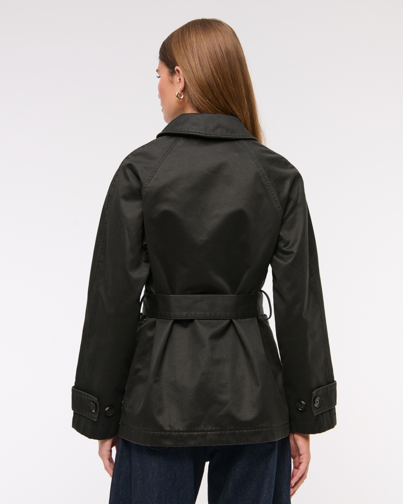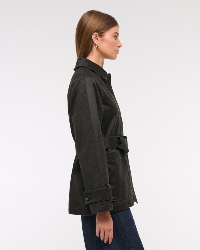 Our new utility jacket in a waxed cotton-blend fabric, featuring adjustable belt detail, button-front closure, classic fold-down collar and front pockets. Imported.