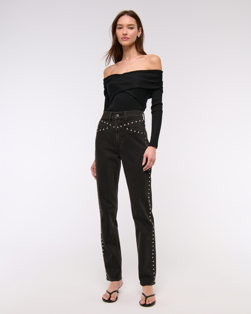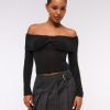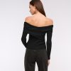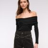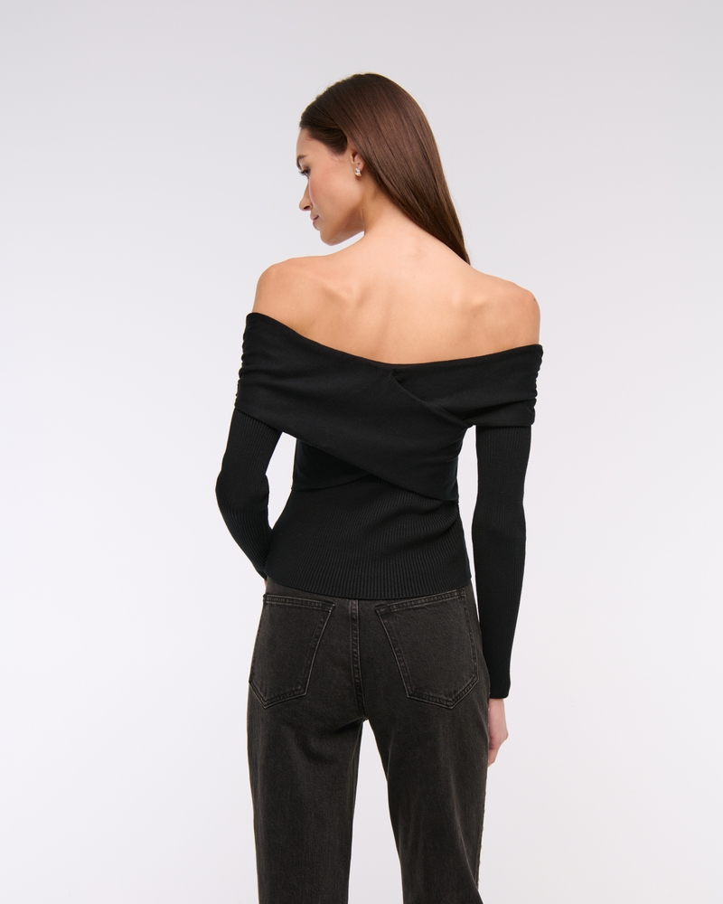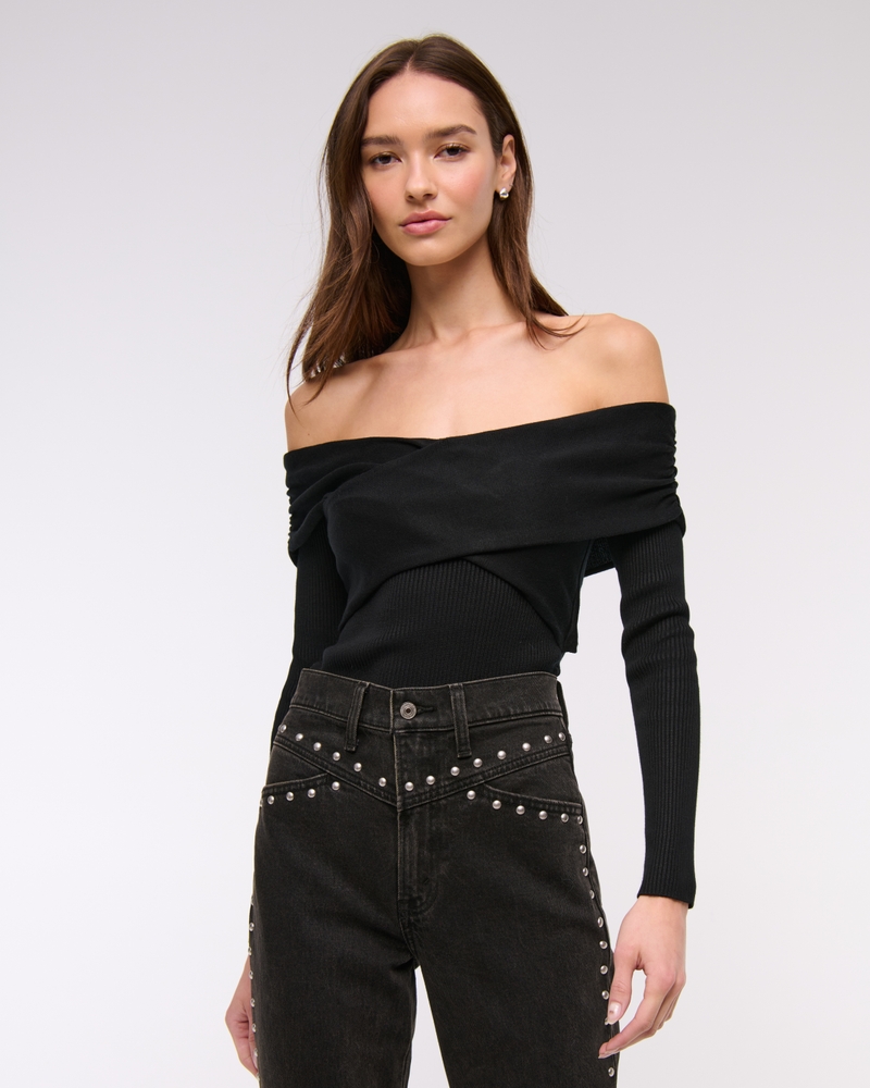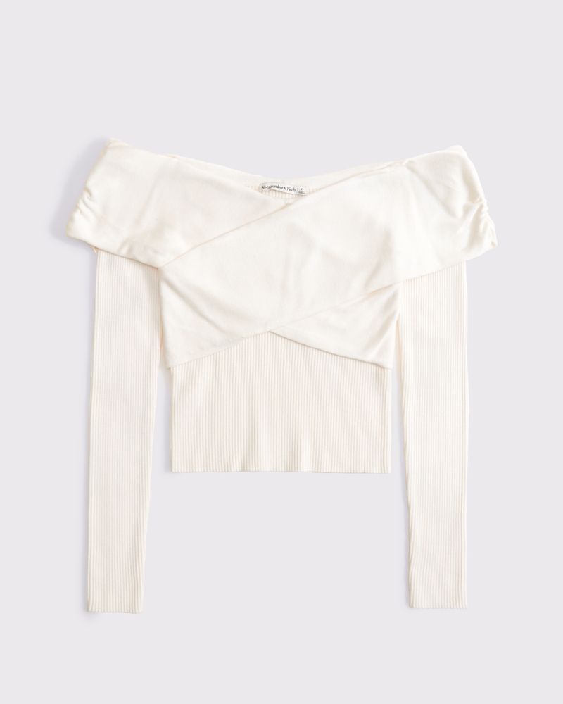 Slim-fitting top in our sculpting sweater-knit fabric, featuring a wrapped off-the-shoulder neckline with a cutout detail. Pairs perfect with your favorite pair of jeans for a night out! Imported.