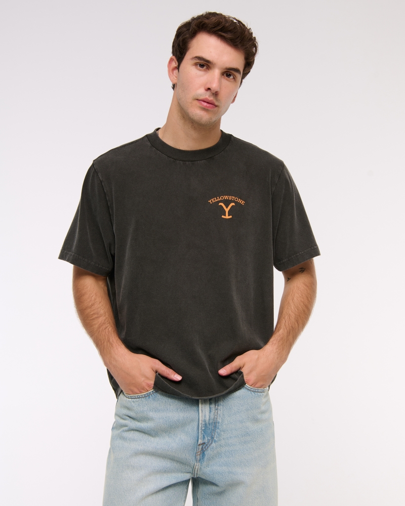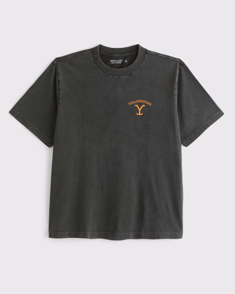 Classic short-sleeve tee in our softAF 180g fabric and vintage oversized-fit silhouette, featuring Yellowstone-inspired graphic details at left chest and back and crew neckline. Imported.