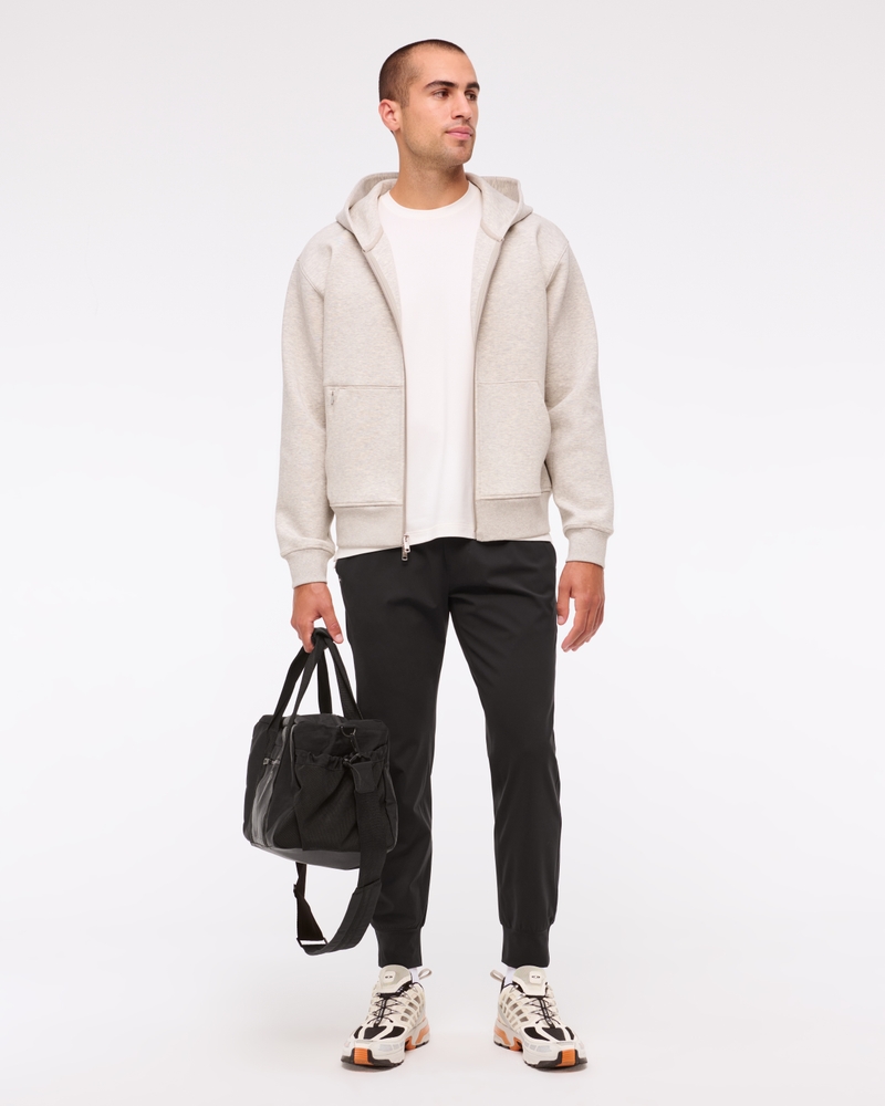 Our new slim-fitting training joggers in a high stretch, quick-dry fabric, that’s super soft and breathable with 4-way stretch, anti-abrasion and moisture-wicking properties, and a tapered fit, with room through the thighs and seat and tapered through the calf with cuff bottom. Features an elasticated waistband with exterior drawcords, laser-cut ventilation at knees, side pockets with hidden zipper pocket for extra security and zippers at cuffs. Perfect for all workouts, but clean enough to provide versatility outside of the gym, too! Imported.