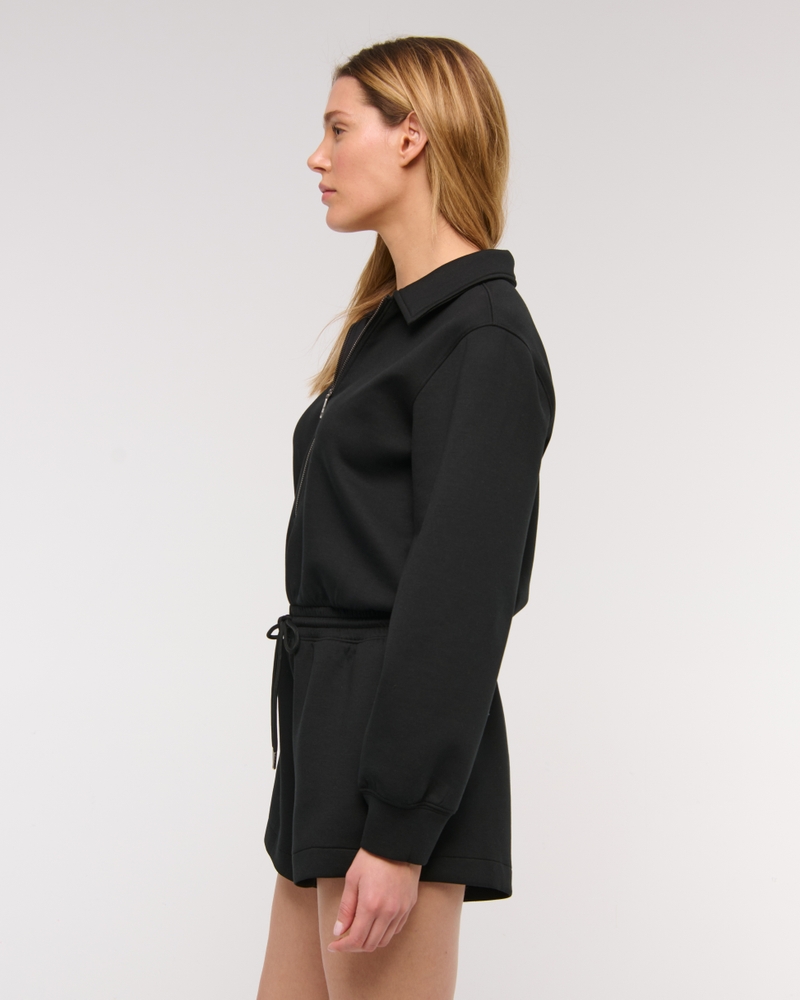 Easy-fitting long sleeve romper in our super soft neoKNIT active fabric. Designed with a smooth interior, our neoKNIT fabric is made from layerable sweat-wicking neoprene. Features a classic polo collar, half-zip detail, an elasticated drawstring waistband and pockets. Imported.