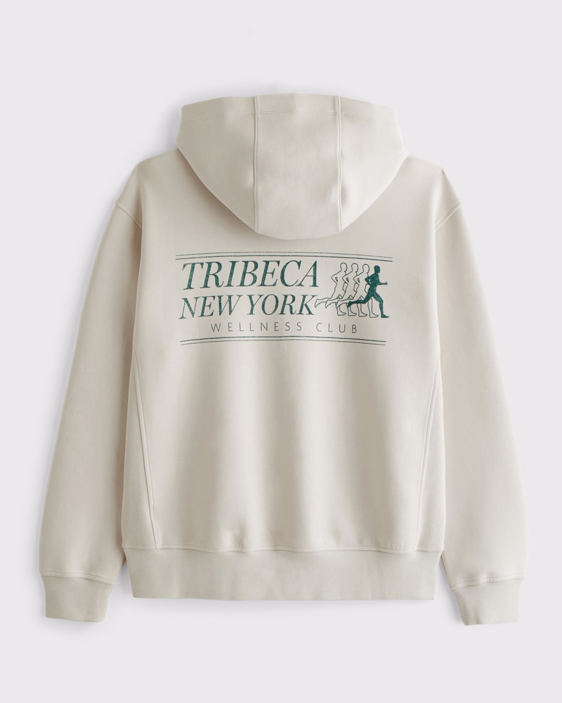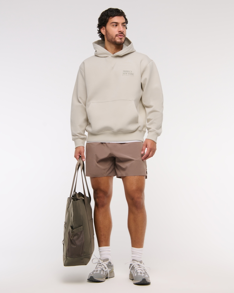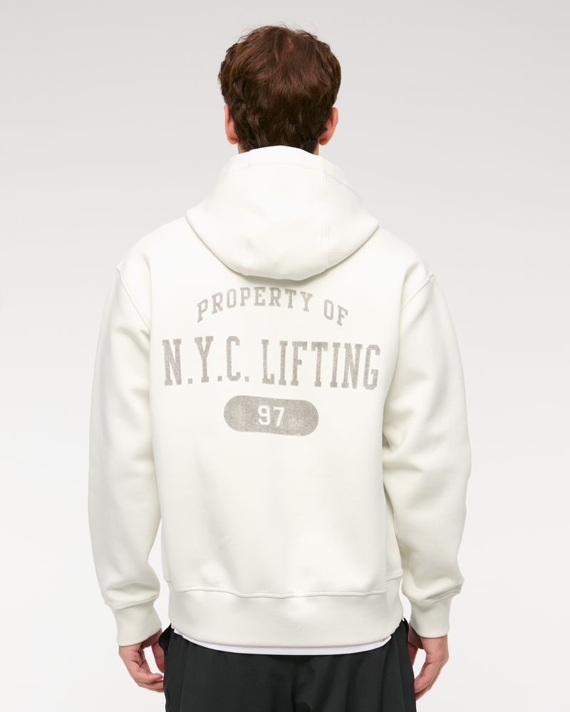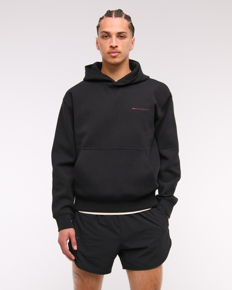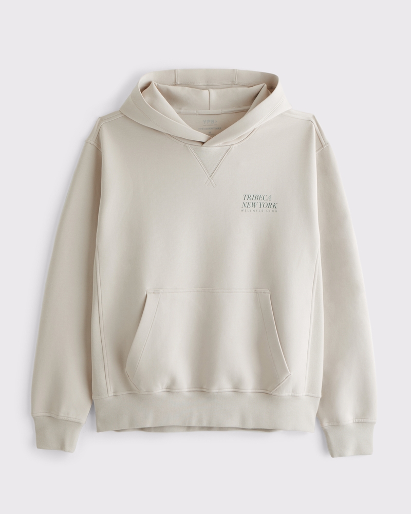 Our new active popover hoodie in our durable and heavyweight neoKNIT fabric, that’s super soft and breathable with 4-way stretch properties, and a more relaxed-fit silhouette. Designed with a smooth interior, our neoKNIT fabric is made from layerable sweat-wicking neoprene. Features graphic detail at left chest and back, YPB logo jocktag at sleeve, scuba hood for style and warmth and front pouch pocket with hidden heat-sealed phone zipper closure. Imported.