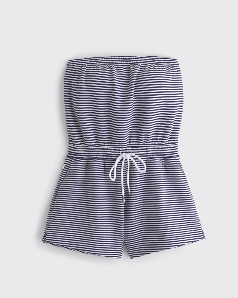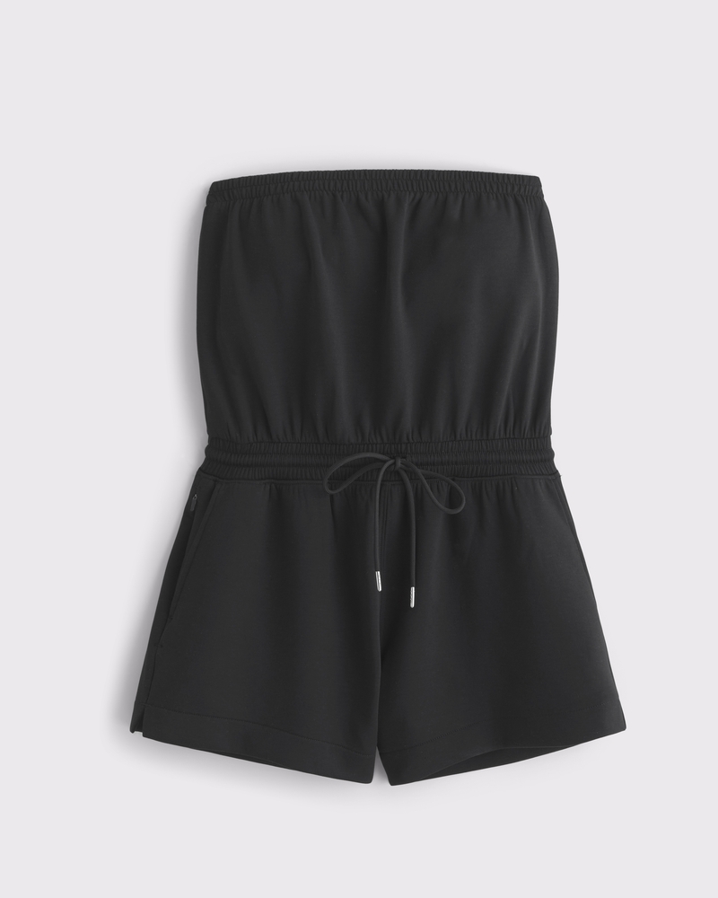 Easy-fitting strapless romper in our super soft neoKNIT active fabric. Designed with a smooth interior, our neoKNIT fabric is made from layerable sweat-wicking neoprene. Features a bandeau neckline with a built-in shelf bra, an elasticated drawstring waistband and pockets. Imported.