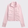Slim-fitting full-zip sweatshirt in our new active fabric, with 4-way stretch and moisture-wicking properties. Features ruching details along the bodice, a mock neckline, zip-up front, side pockets, and thumbholes at cuffs. Imported.