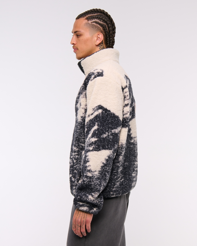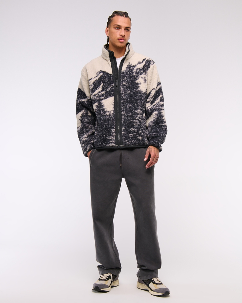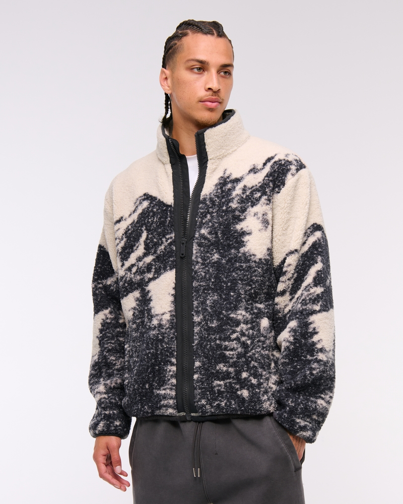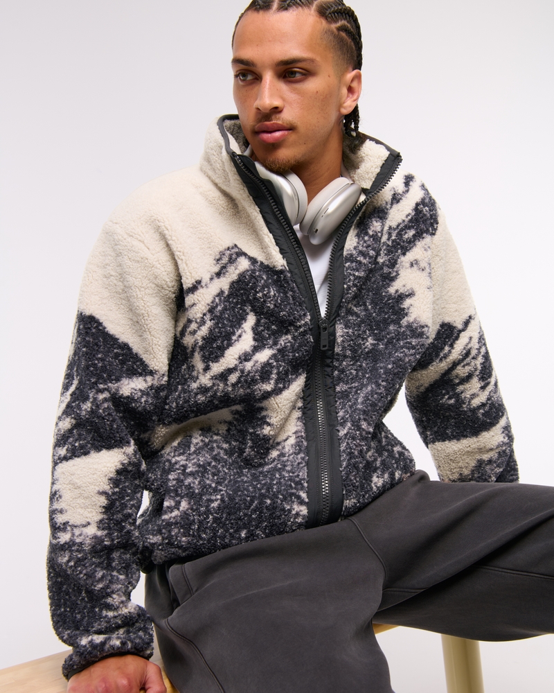 Our active full-zip sweatshirt in our plush sherpa fabric with polar fleece interior lining. Features a relaxed-fit silhouette, zip-up front, mockneck collar, front pouch pocket and adjustable bungees at cinched hem. Imported.