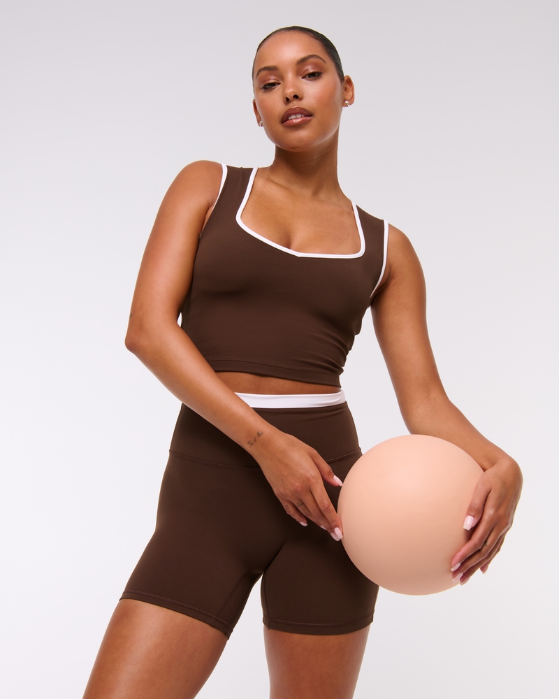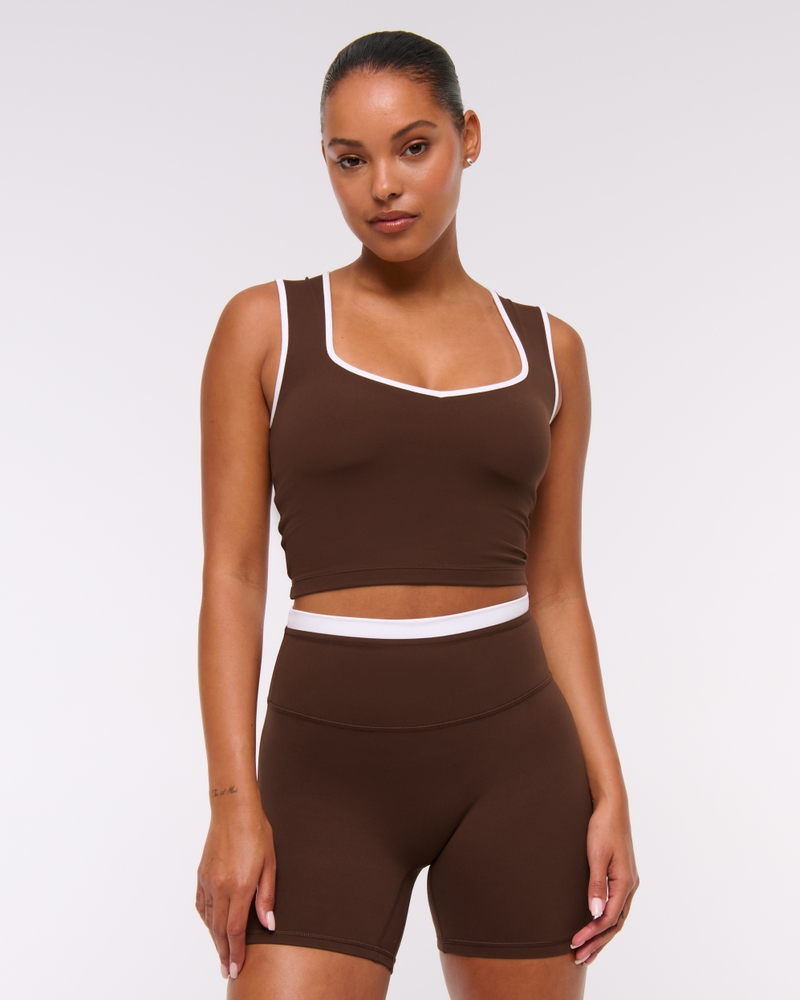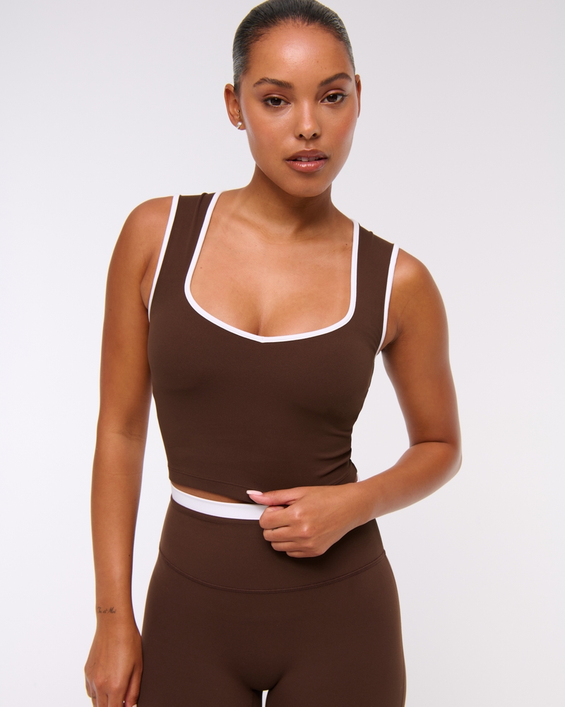 Slim-fitting active tank in our comfortable studioFLEX active fabric. Our studioFLEX fabric is lightweight, buttery soft and nonrestrictive providing a barely there feel, it moves with you during low impact activity and is also great for all-day wear. Features a cropped length, on-trend portrait neckline and interior lining with removable pads. Imported.