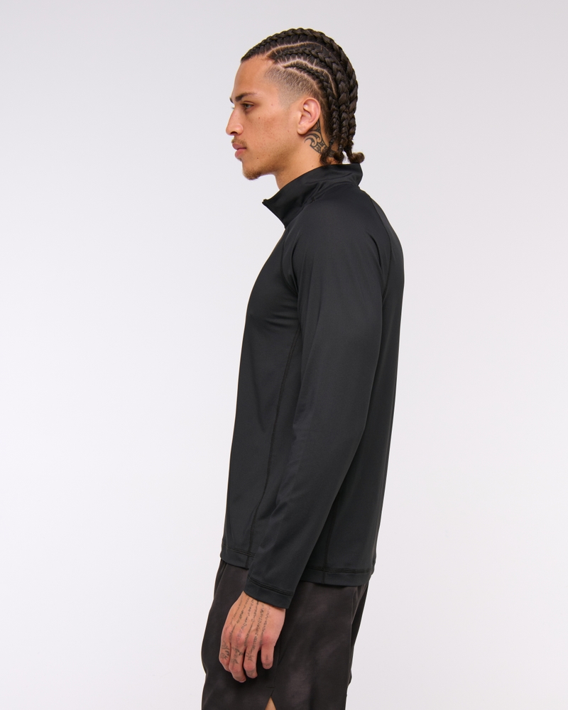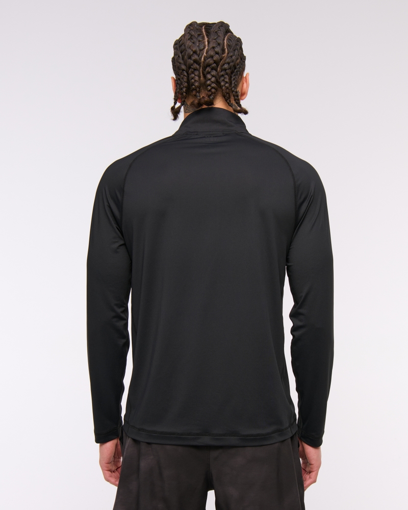 Our active half-zip sweatshirt in our comfortable sweatWIK fabric, that’s super soft and breathable with 4-way stretch, anti-odor and moisture-wicking properties, and a slim-fit. Our sweatWIK fabric is designed with quick-dry comfort for high-intensity workouts. Features half-zip detail, mockneck collar, front pouch pocket and banded hem and cuffs. Size down for a more compressive fit. Imported.